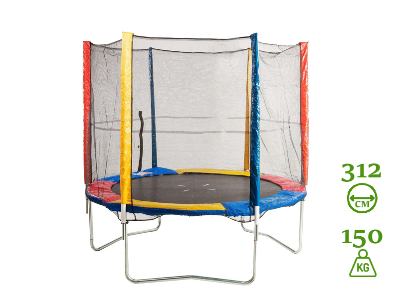 Качество материалов, использованных в конструкции батута Acrobat ø 312 см, являются гарантией его длительного использования. Стальной каркас и шестьдесят пружин имеют специальное покрытие, защищающее металл от ржавчины. Износостойкое полипропиленовое прыжковое полотно устойчиво к ультрафиолету. Такой состав материалов позволяет батуту продолжительное время находиться под открытым небом без потери своих свойств и качества.