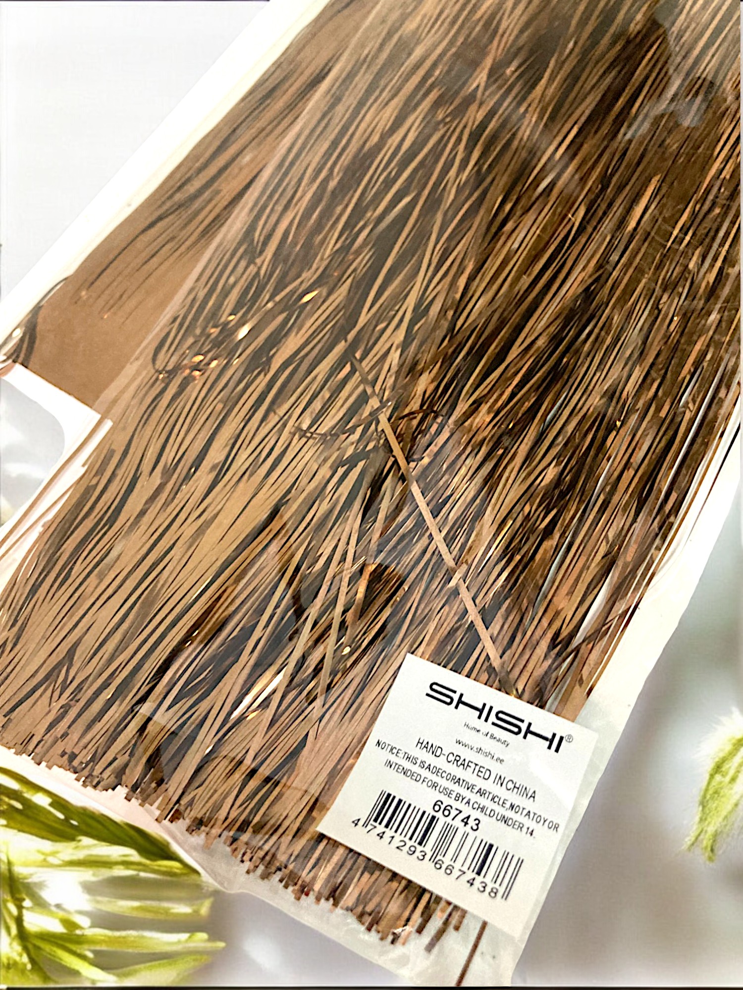 Это новогоднее украшение, созданное специально для того, чтобы добавить в ваш дом атмосферу праздника и волшебства. Дождик имеет длину 76 см, что позволяет использовать его для украшения различных поверхностей, таких как окна, стены, двери и даже ёлка. Цвет меди придаёт изделию изысканность и роскошь, делая его идеальным выбором для создания праздничного настроения. Дождик легко устанавливается и снимается, что делает его удобным в использовании. Он также не требует особого ухода, поэтому вы сможете наслаждаться его красотой на протяжении всего новогоднего сезона.