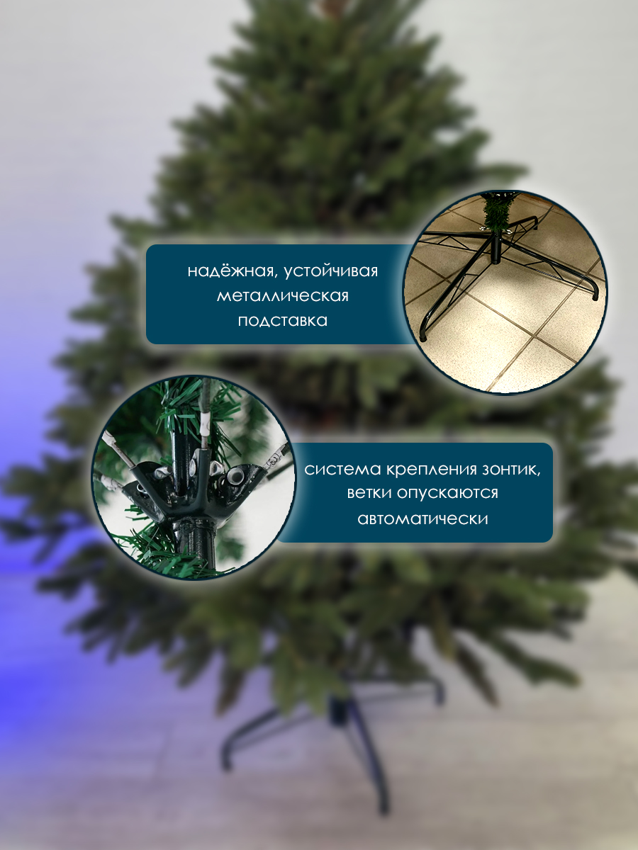 Хвоя сделана из высококачественного высокопрочного литого РЕ-пластика (полиэтилена), который абсолютно не токсичен и не выделяет опасных веществ. Веточки мягкие, эластичные, приятные на ощупь, не рвутся и не ломаются. Елка похожа на молоденькую елочку, принесенную из леса.