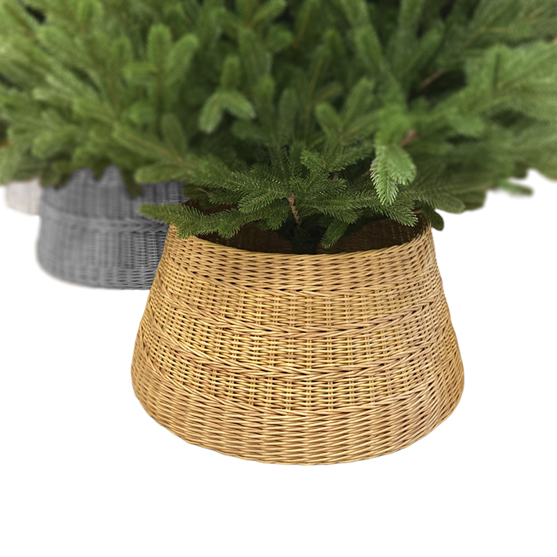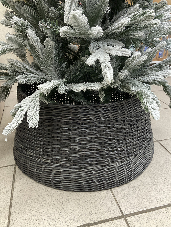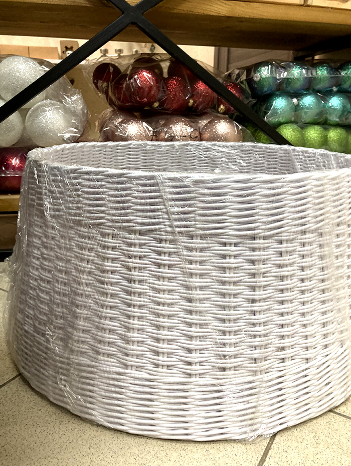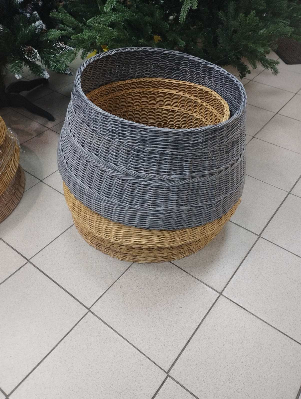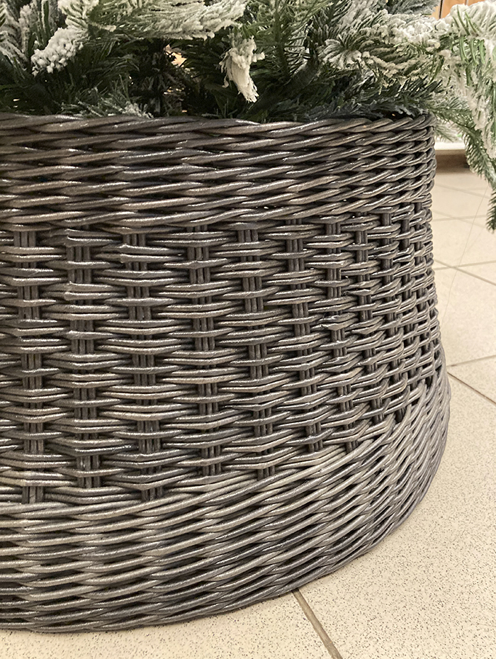 Плетёная корзина под ёлку - это хорошая альтернатива приевшимся подставкам, которые надо постоянно прятать или придумывать как их украсить. Плетёная корзина из ивы смотрится очень красиво. Она придаст ёлочке более натуральный вид, как-будто она живая и растёт из корзинки. Ничего сложного в её установке нет. Сразу ставится корзина, а в неё подставка от ёлки и сама ёлочка.
