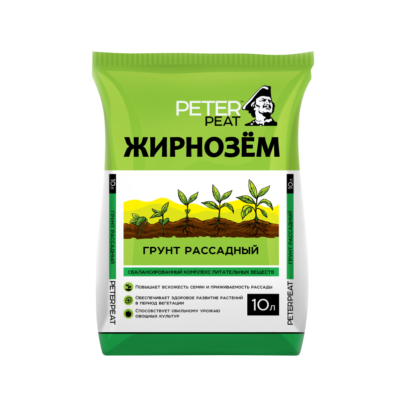 Грунт Peter Peat Рассадный "Жирнозем". Полностью готовый к применению торфяной грунт для выращивания рассады овощных и цветочных культур. Не требует дополнительного внесения удобрений, обеспечивает рассаду растений необходимым набором элементов питания. Способствует повышенной всхожести и приживаемости рассады, обильному урожаю овощных культур, обеспечивает здоровое развитие в период вегетации.