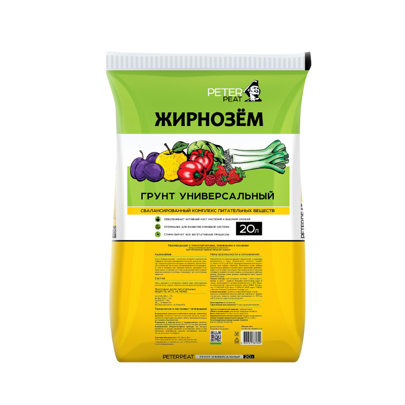 Грунт Peter Peat Универсальный "Жирнозем". Полностью готовый к применению торфяной грунт для выращивания всех видов овощных, цветочных культур, плодовых деревьев и ягодных кустарников. Для заполнения посадочных ям и лунок, для формирования плодородного слоя в теплицах, при закладке газонов, цветников и пр. Гарантирует активный рост и высокий урожай, обеспечивает развитие корневой системы, стимулирует все вегетативные процессы.
