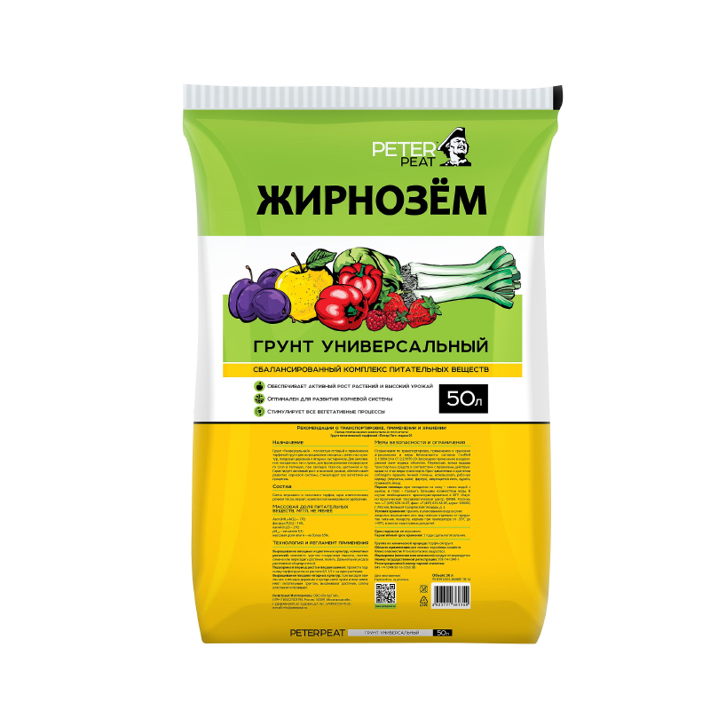 Грунт Peter Peat Универсальный "Жирнозем". Полностью готовый к применению торфяной грунт для выращивания всех видов овощных, цветочных культур, плодовых деревьев и ягодных кустарников. Для заполнения посадочных ям и лунок, для формирования плодородного слоя в теплицах, при закладке газонов, цветников и пр. Гарантирует активный рост и высокий урожай, обеспечивает развитие корневой системы, стимулирует все вегетативные процессы.