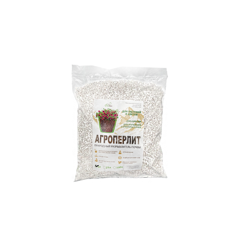 Перлит - это горная порода вулканического происхождения, полезное ископаемое. В сельском хозяйстве агроперлит используется для улучшения структуры почвы, её разрыхления или мульчирования. Перлит особенно ценен для растений благодаря своей способности поглощать воду. Благодаря высокой пористости вспученные гранулы могут вместить в четыре раза больше воды, чем их собственный вес. Материал отдаёт влагу постепенно, распределяя её по капиллярам.