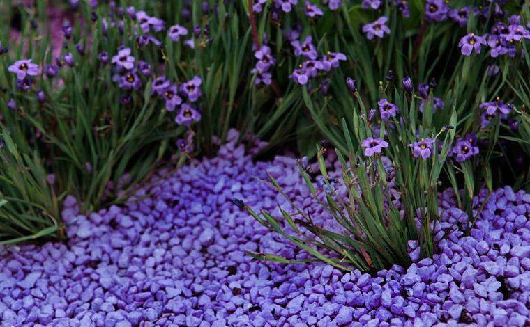 Щебень окрашенный гранитный, фиолетовый, 5-10мм, (20 кг). Добавьте изысканные акценты в ландшафтный дизайн с декоративным гранитным щебнем! Яркий и стильный материал для ландшафтного дизайна и творческих проектов — окрашенный гранитный щебень фиолетового цвета. Этот материал сочетает эстетику натурального камня и практичность — идеальное решение для творческих и строительных задач.