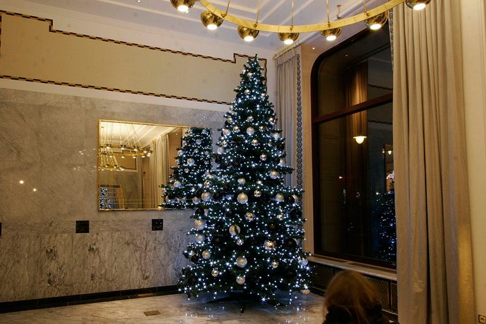 Украшается елка специальными украшениями для больших елок, которые всегда есть у нас в наличии.