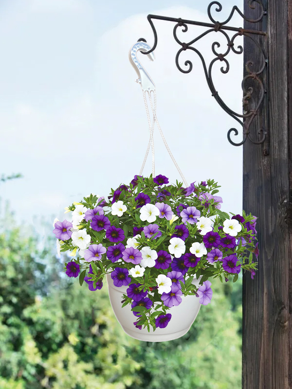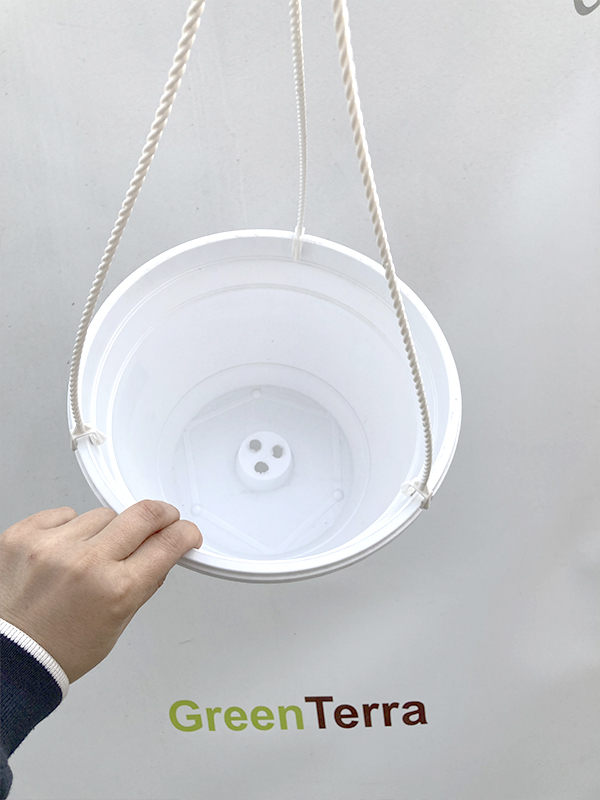 Подвесные горшки для цветов выполнены из полипропилена. Горшок с тремя пластиковыми подвесами и крючком сверху для крепления на опоре. Крепление подвеса к горшку и крюк очень прочные. В случае необходимости подвесная система легко снимается, превращаясь в обычный настольный горшок. Подвесные горшки для цветов выполнены из качественного высокоэкологичного сырья.