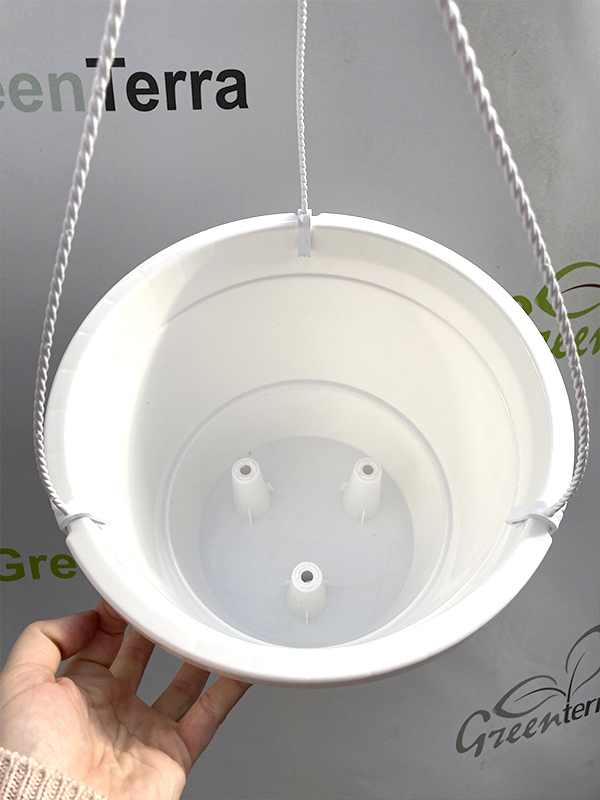 Неоспоримым преимуществом пластмассовых горшков является их лёгкость, что не требует сильного укрепления опоры, на которой будет держаться «крюк» подвеса горшка. К тому же, пластиковые горшки гораздо дольше, чем глиняные удерживают влагу. Чаще всего подвесные горшки используют для ампельных растений с лазающими и свисающими стеблями. Подвесные горшки являются важным элементом украшения балконов, террас и загородных домов.