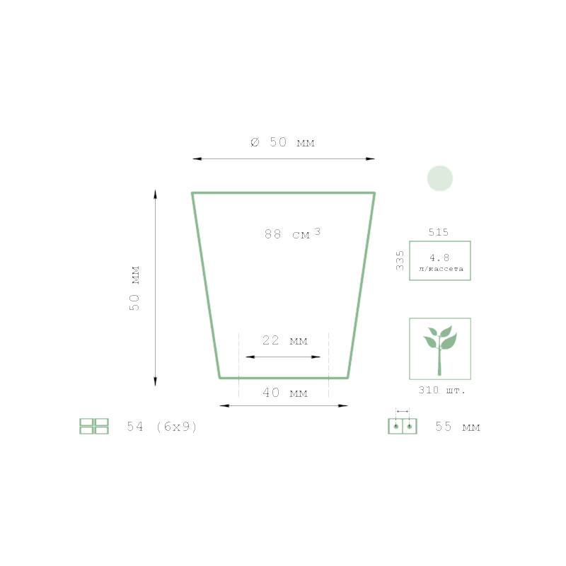 Кассета для рассады 54 ячейки (54-Н), 88мл