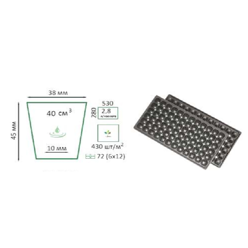 - Размер и объём одной ячейки: 45х38 мм, 40мл