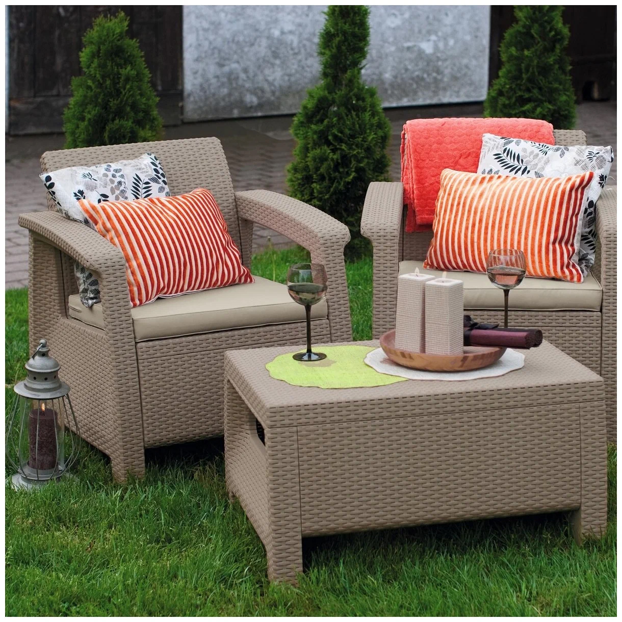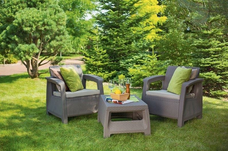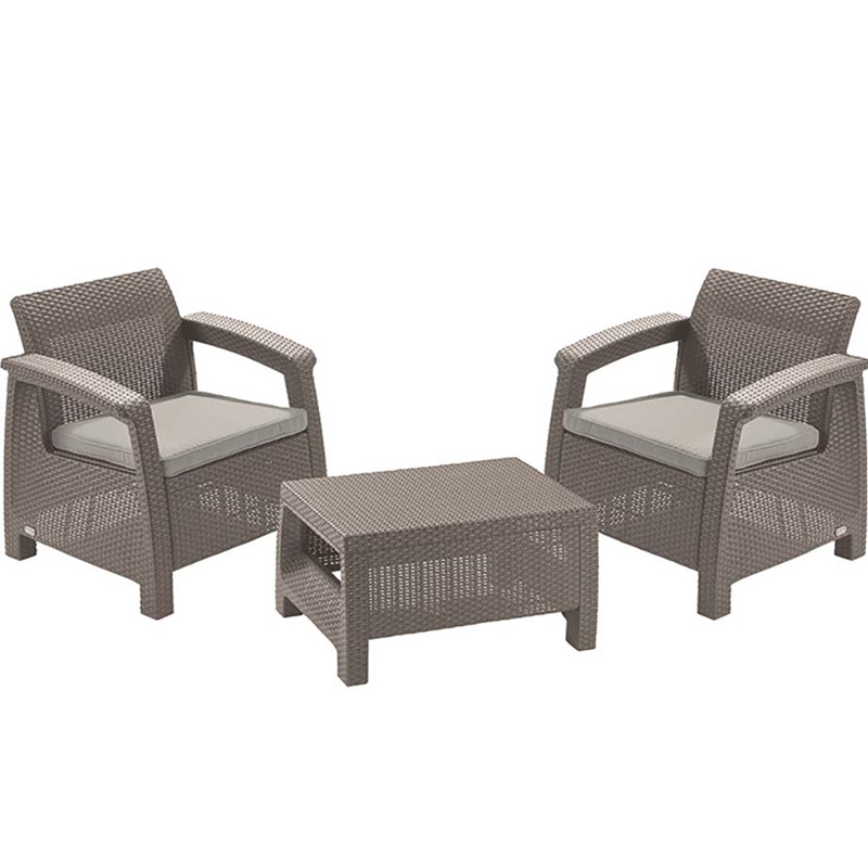 Комплект мебели Corfu Weekend Set - это красота и элегантность в одном наборе. Компактная форма стеллажа и оптимальные размеры набора позволяют оформлять также и небольшие садовые и балконные пространства. Комплект состоит из столика и двух кресел с мягкими подушками. Элегантность, удобство и эргономика - это гарантия удовольствия от отдыха на свежем воздухе. Простота сборки и легкость содержания в чистоте - это дополнительные преимущества этой мебели.