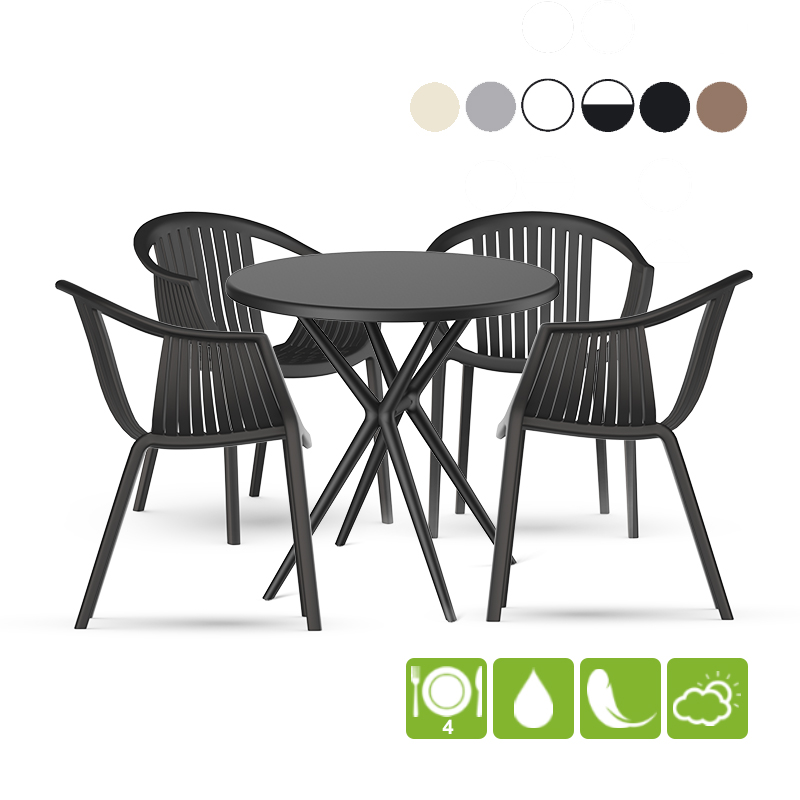 В набор мебели входит стол круглый Teori и 4 стула ESCALATE.