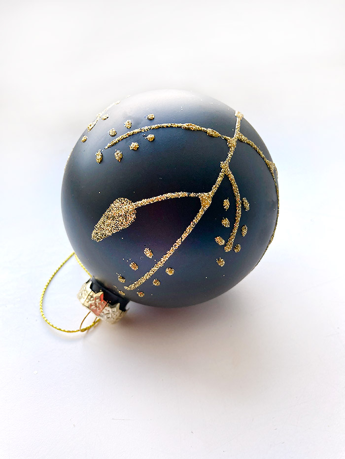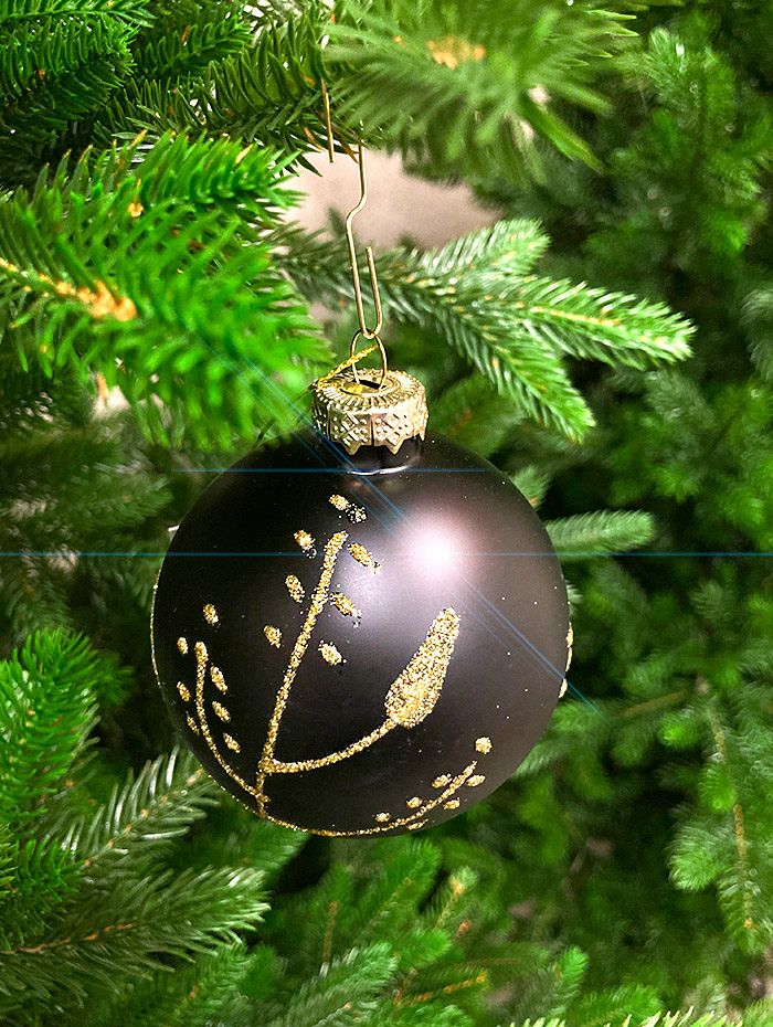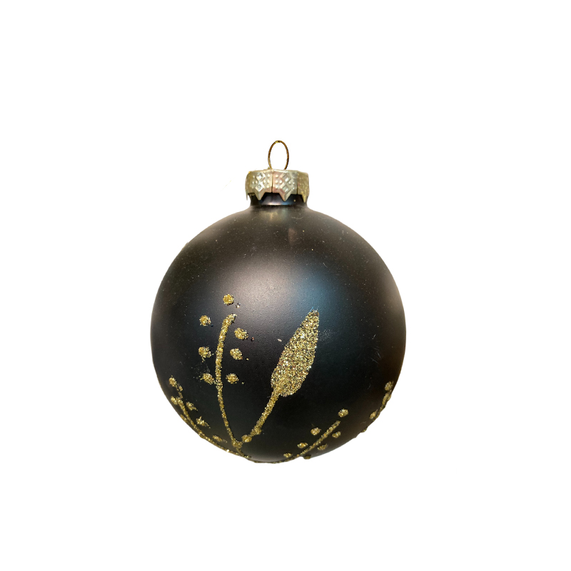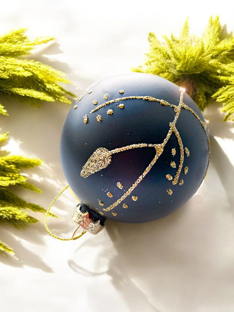 Красивый матовый шар, чёрного цвета с золотистым узором. Смотрится просто потрясающе. Если вы хотите по-настоящему удивить гостей и произвести на них впечатление, украсьте свою елку стеклянными игрушками. Сегодня елочные игрушки из пластика есть в каждом доме, а стеклянные — у единиц!