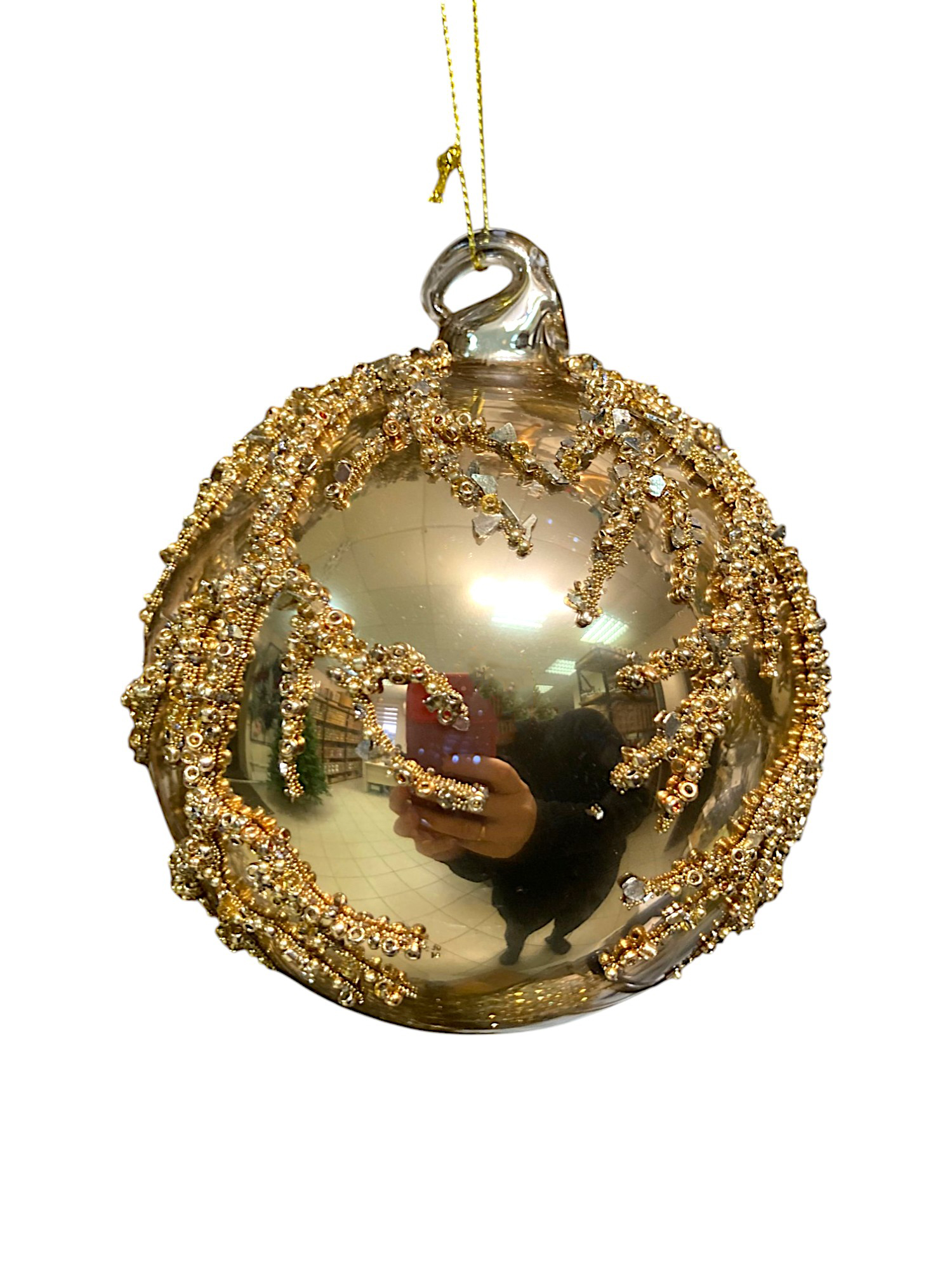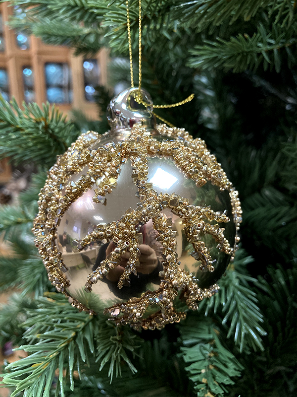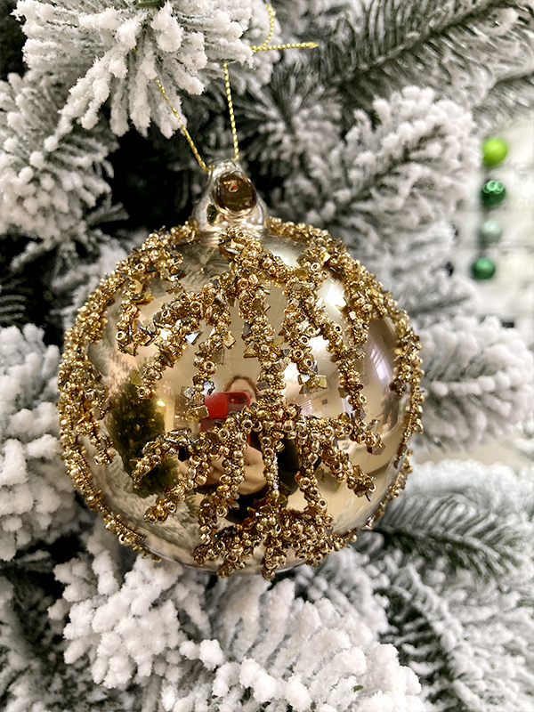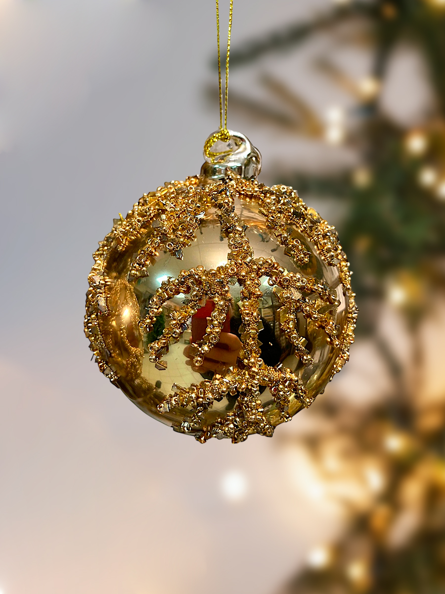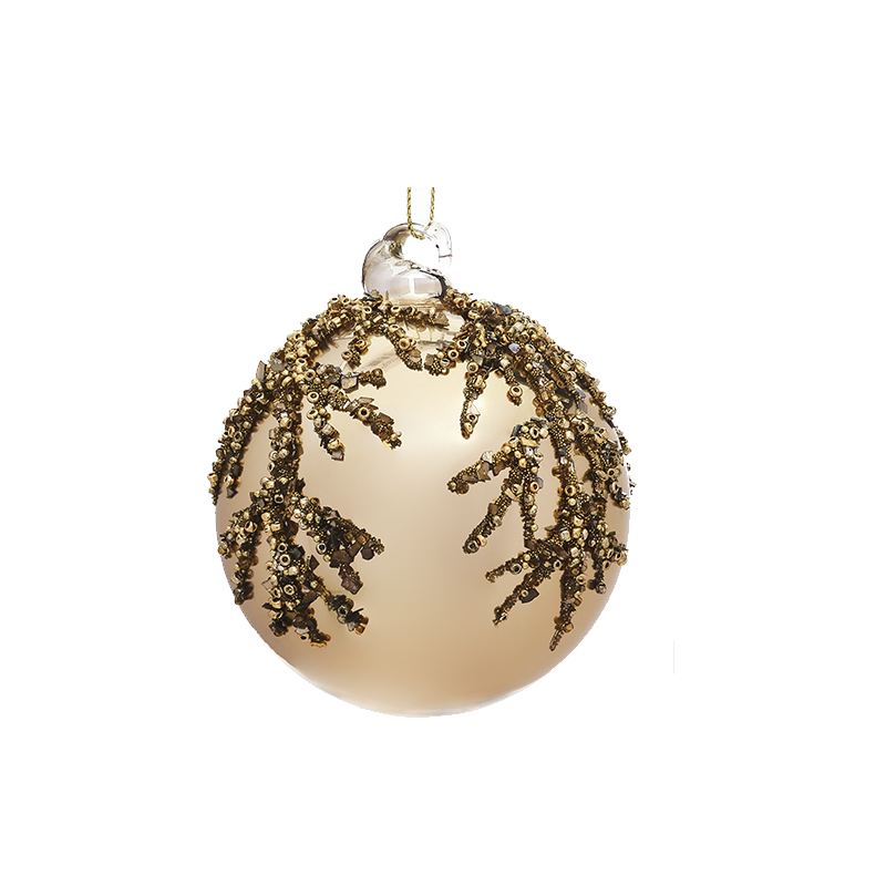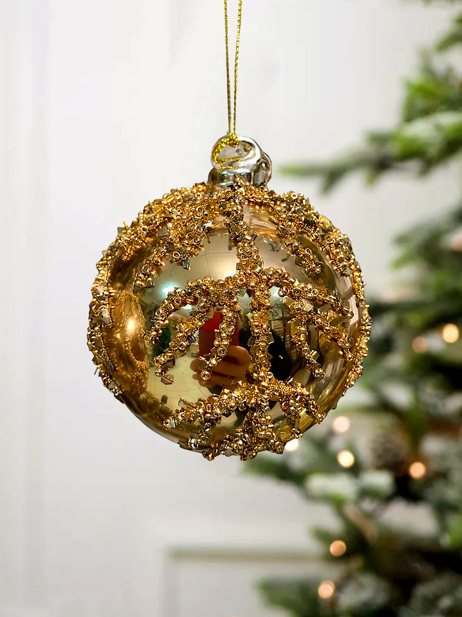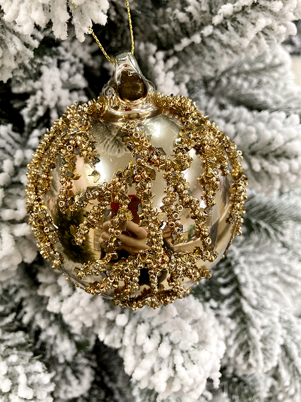 Шар елочный стекл. 8 см — это глянцевый шар золотого цвета с рельефными рисунком в виде веточки из золотистых блёсток. Такое украшение станет изысканным акцентом в праздничном убранстве. Объемные эффекты на игрушке придают ей еще более оригинальный вид. Шар понравится любителям старины. Если вы хотите по-настоящему удивить гостей и произвести на них впечатление, украсьте свою елку стеклянными игрушками ручной работы. Сегодня елочные игрушки из пластика есть в каждом доме, а стеклянные — у единиц!