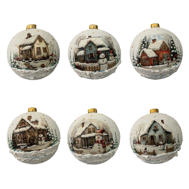 Оригинальные шары из Польши! В коллекции представлены шары с разнообразными сюжетами на тематику зимних домиков. В рамках одной серии каждый шар имеет небольшие отличия, присущие ручной работе. Наличие определённого рисунка уточняйте! Шары продаются по 1шт.