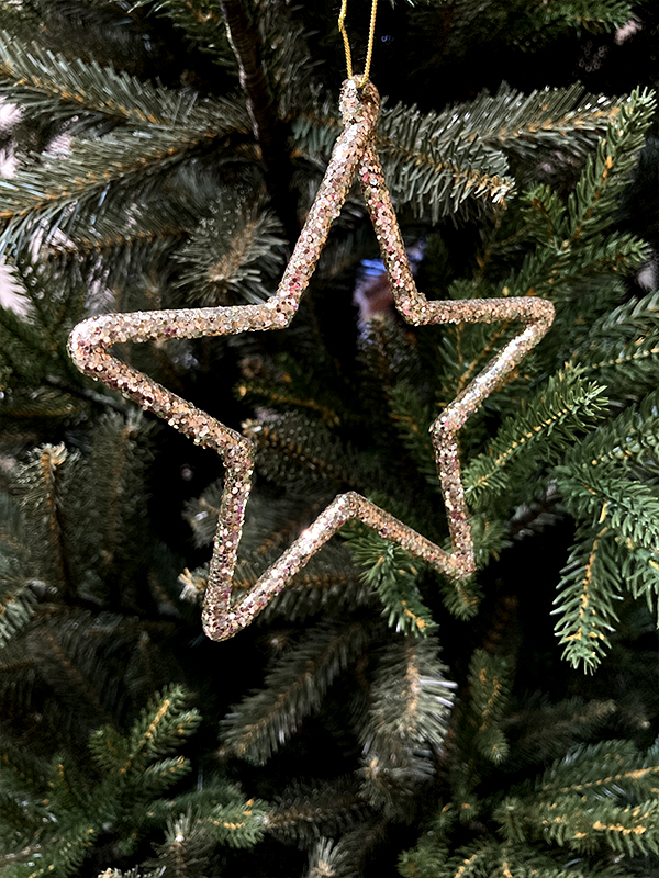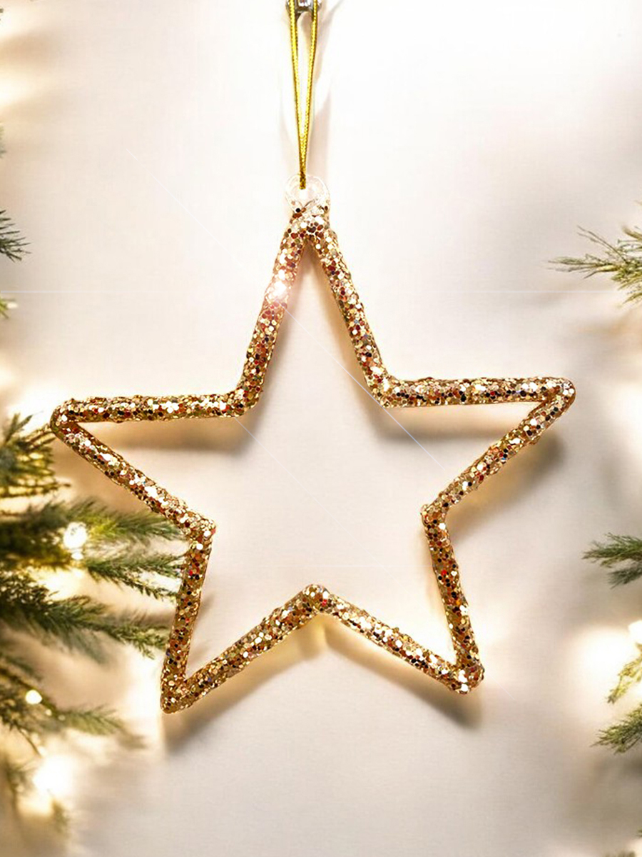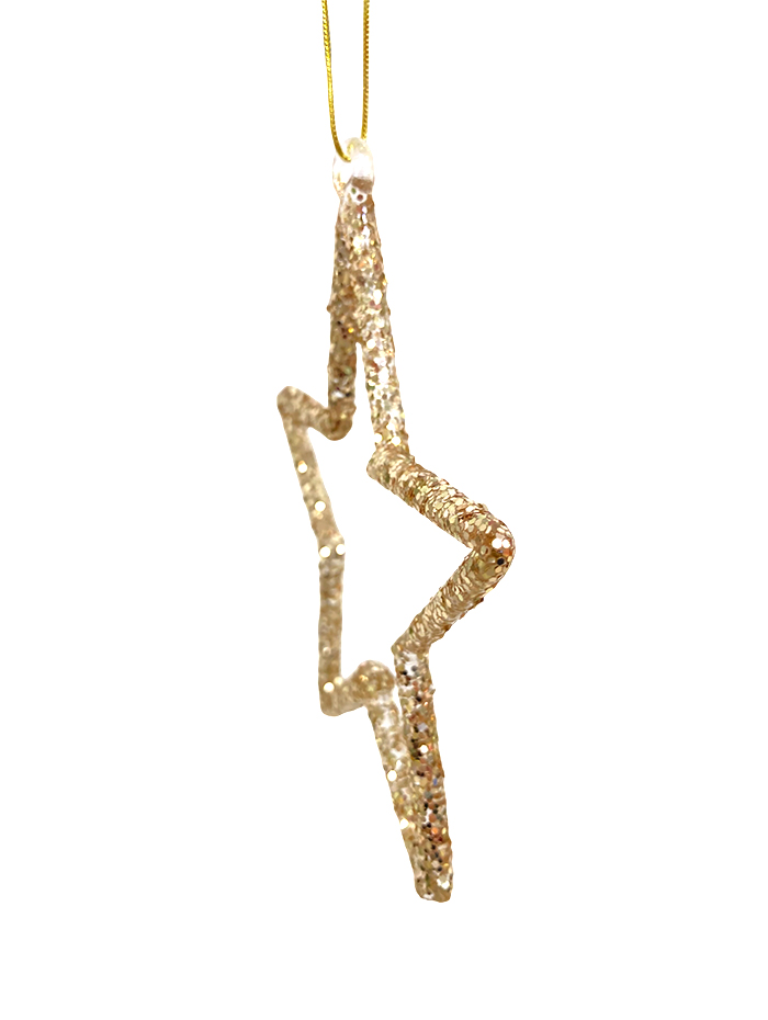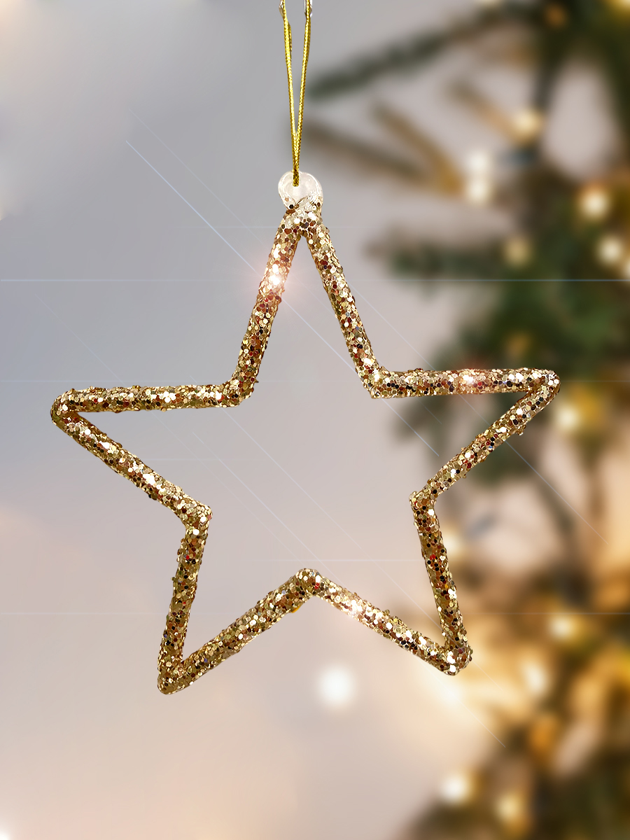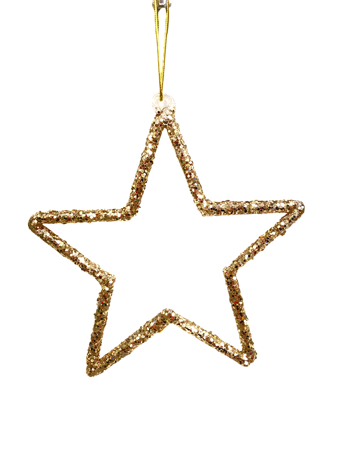 Игрушка елочная стекл. "Звезда" — новогодняя ёлочная игрушка в виде золотистой пятиконечной звезды украшенной блёстками, станет прекрасным украшением вашей ёлки. Она выполнена из качественного стекла и имеет золотистый цвет, который добавит ярких красок в атмосферу праздника. Вешается на ёлку с помощью подвеса. Если вы любите новые, оригинальные идеи и формы, это елочное украшение для вас! Украсьте елку красиво и создайте собственное новогоднее настроение. Если вы хотите по-настоящему удивить гостей и произвести на них впечатление, украсьте свою елку стеклянными игрушками. Сегодня елочные игрушки из пластика есть в каждом доме, а стеклянные — у единиц!