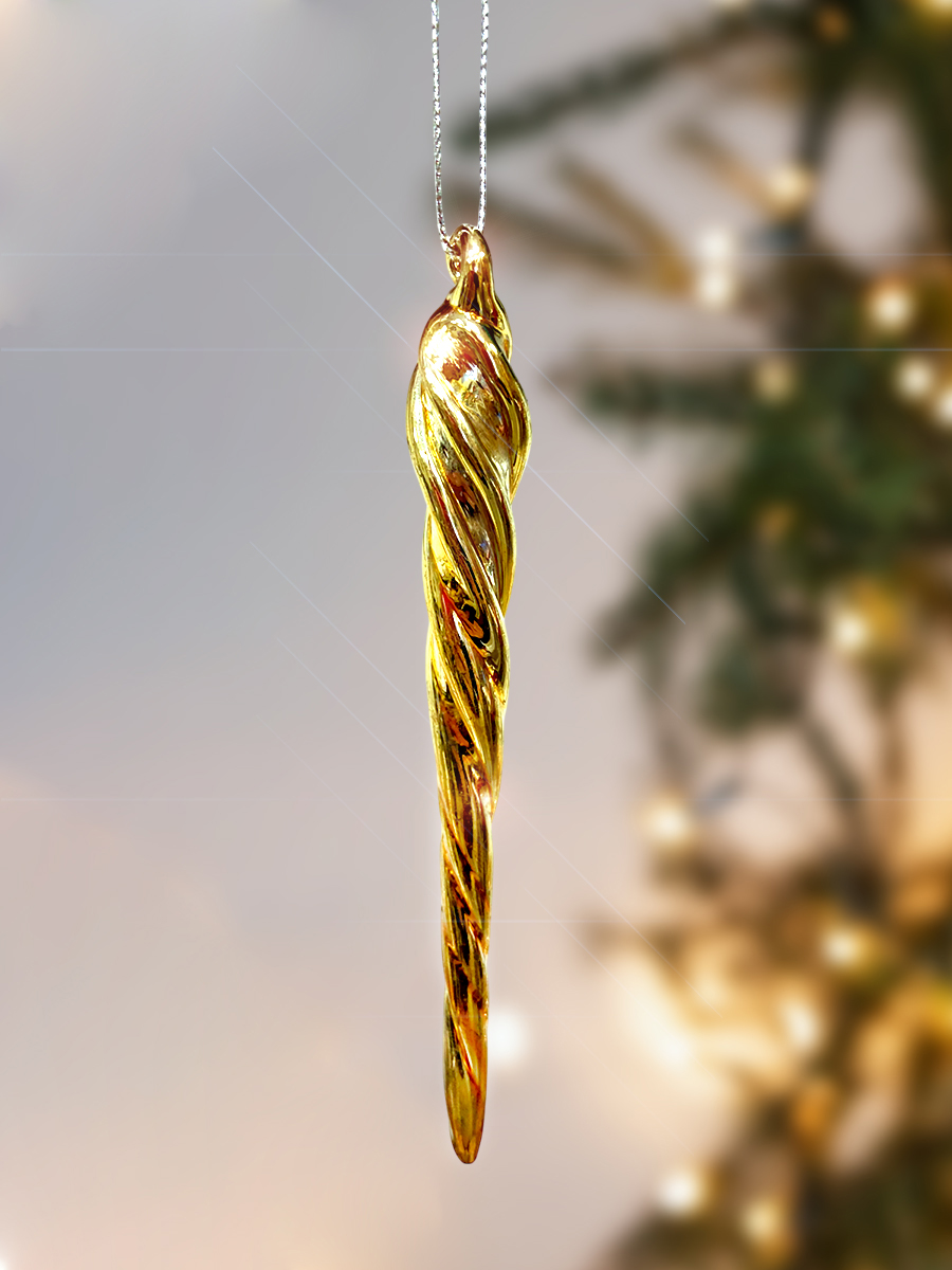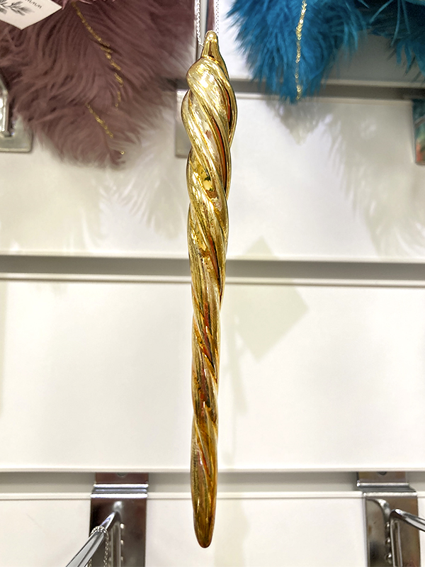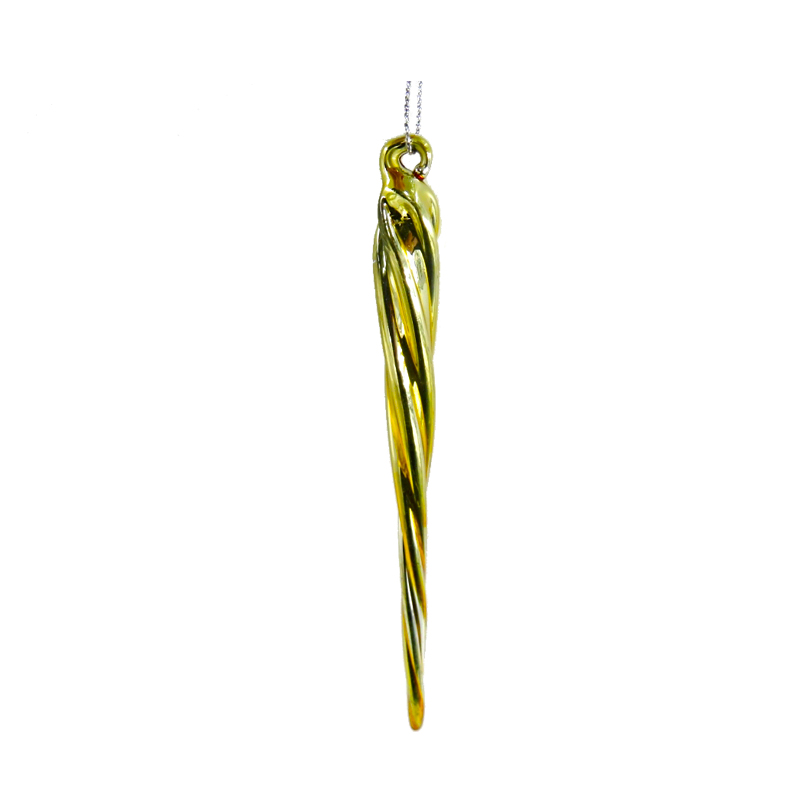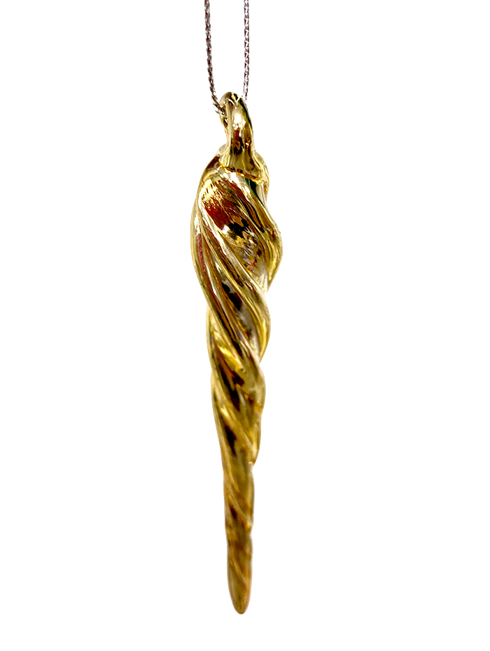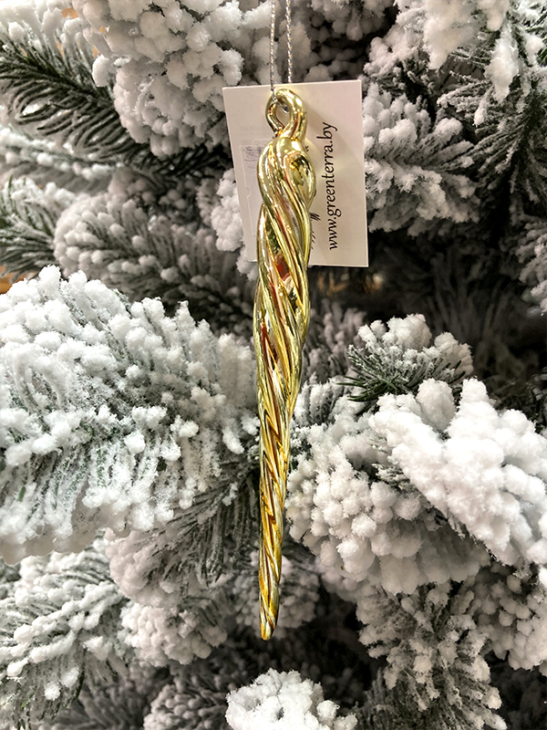 Игрушка елочная стекл. сосулька — новогоднее стеклянное украшение в виде витьеватой сосульки. Ёлочная игрушка выполнена в красивом глянцевом золотом цвете. Это очень необычное и экстравагантное украшение, которое однозначно привлечёт внимание к вашей ёлочке. Вешается на ёлку с помощью подвеса. Если вы любите новые, оригинальные идеи и формы, это елочное украшение для вас! Украсьте елку красиво и создайте собственное новогоднее настроение. Если вы хотите по-настоящему удивить гостей и произвести на них впечатление, украсьте свою елку стеклянными игрушками. Сегодня елочные игрушки из пластика есть в каждом доме, а стеклянные — у единиц!