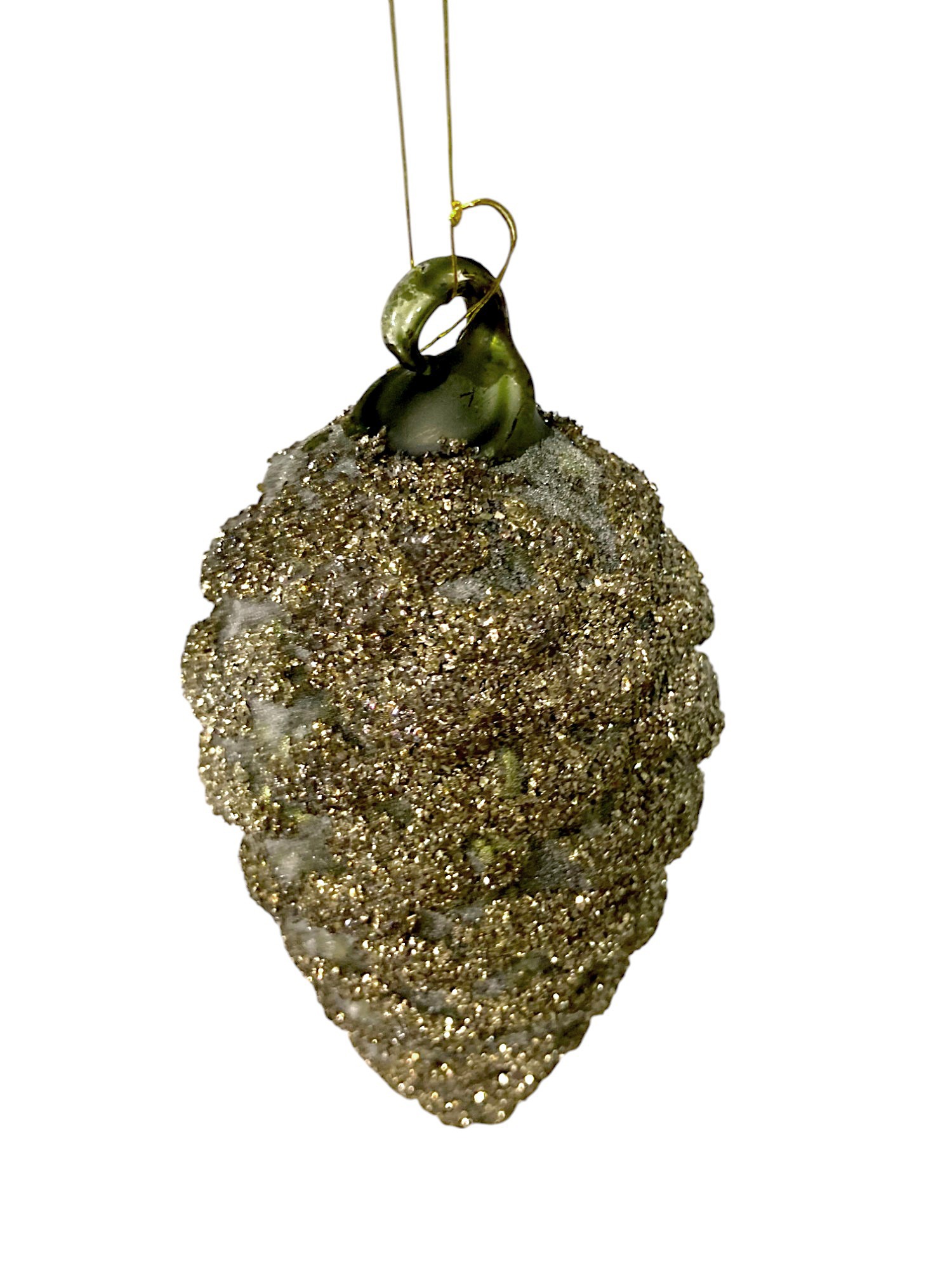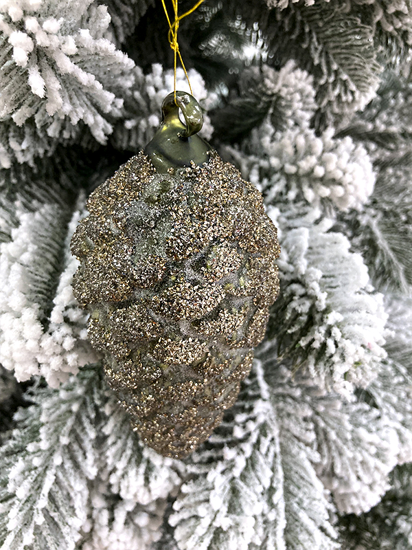 Игрушка елочная стекл. Шишка — в виде еловой шишки зелёного цвета с "сахарной" фактурой. Украшение имеет рельефную поверхность. Края еловых чешуек украшены серебристыми блёстками. Смотрится просто потрясающе. Если вы хотите по-настоящему удивить гостей и произвести на них впечатление, украсьте свою елку стеклянными игрушками. Сегодня елочные игрушки из пластика есть в каждом доме, а стеклянные — у единиц!