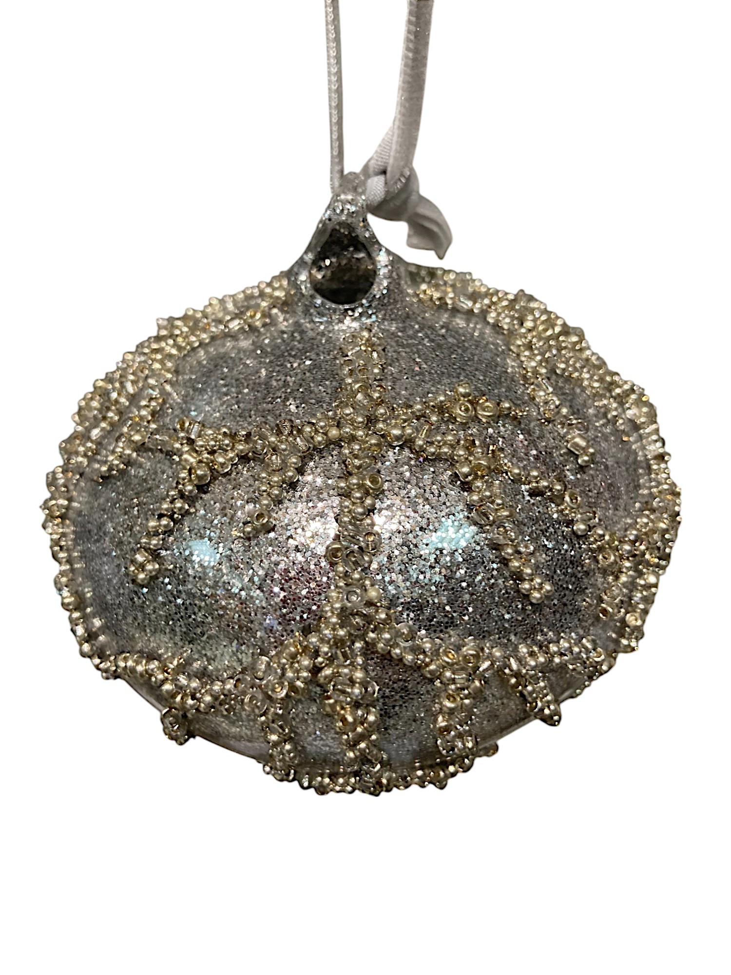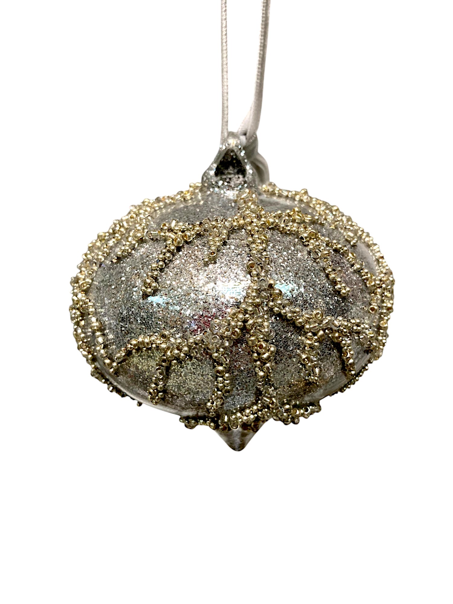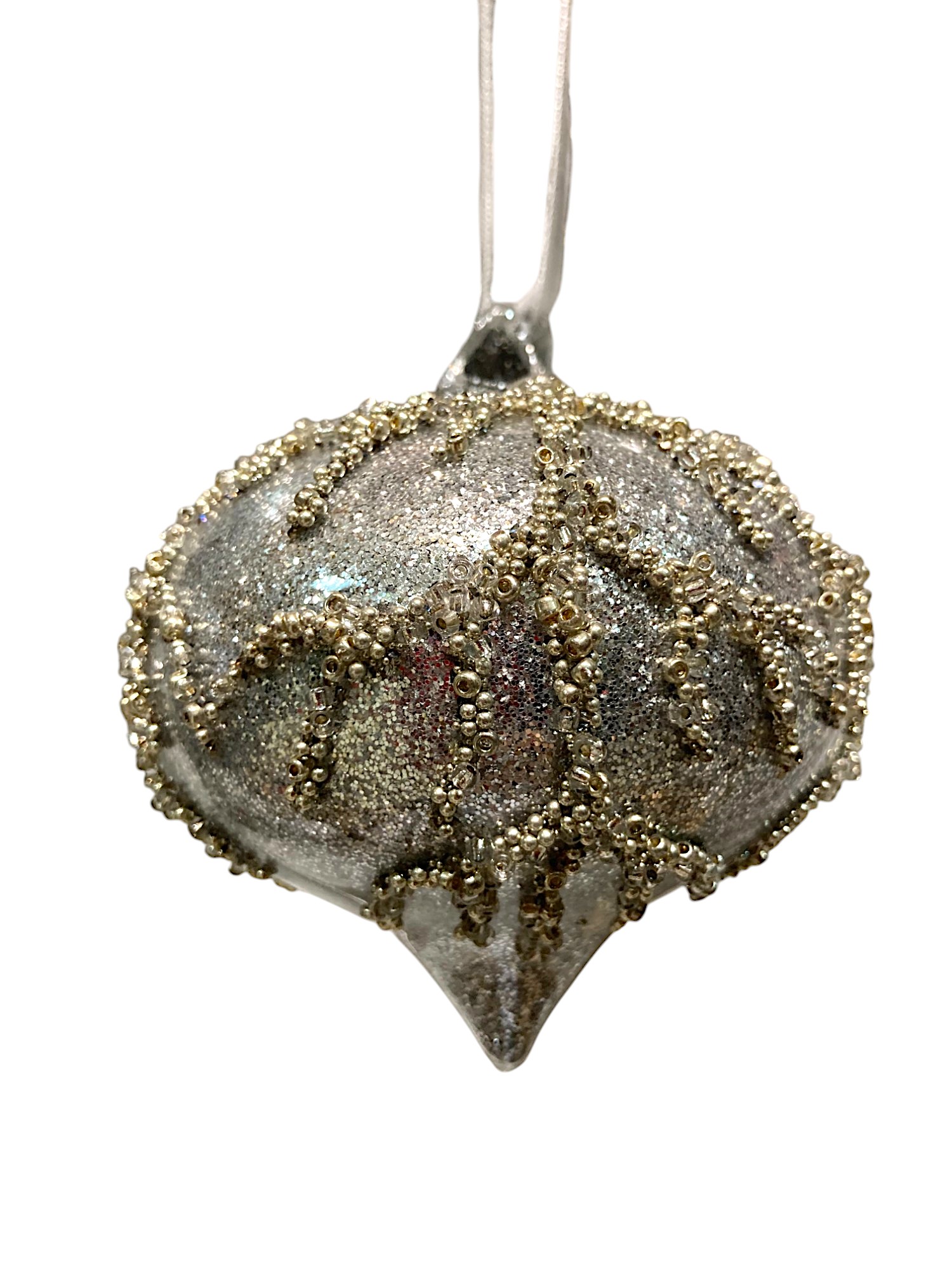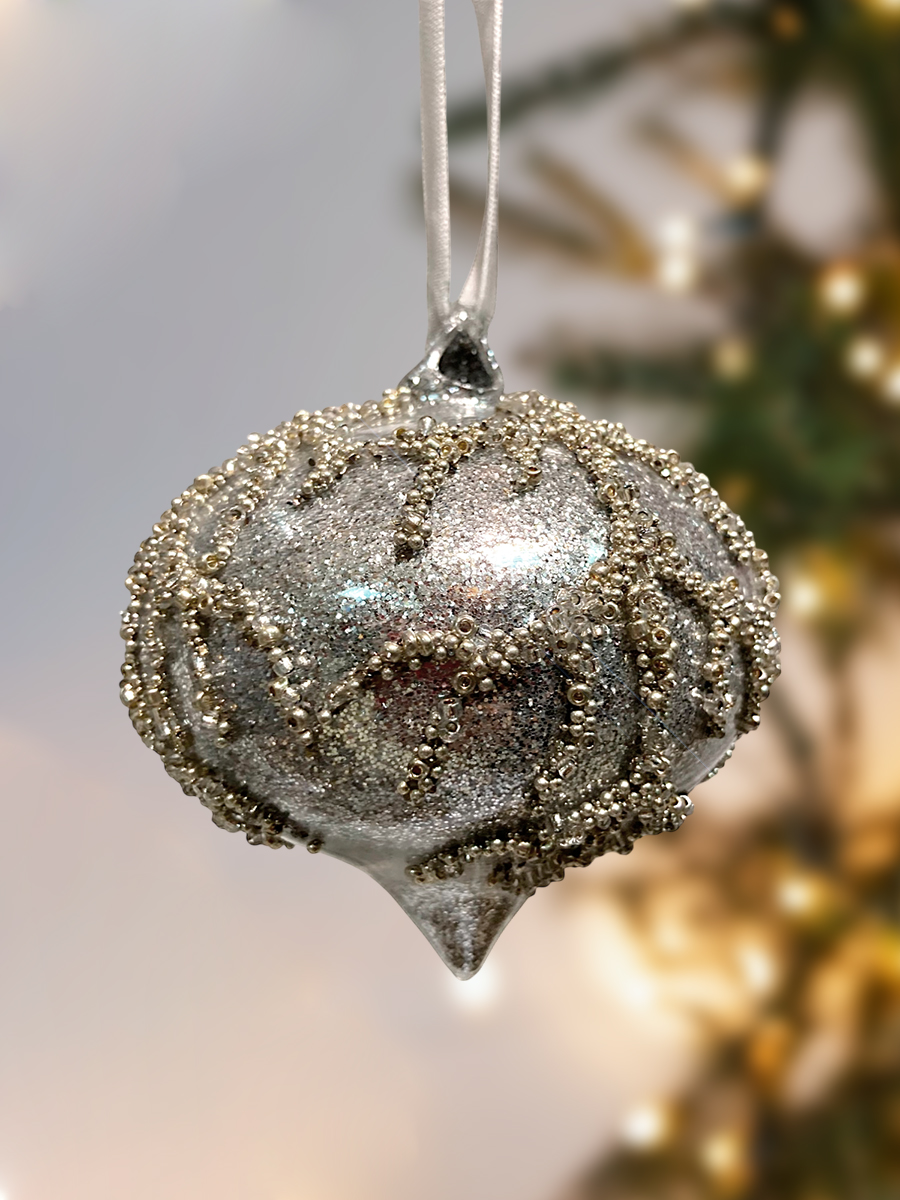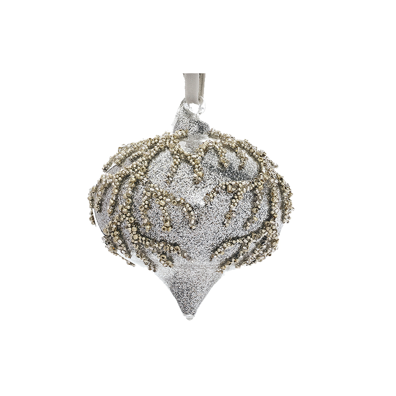Игрушка елочная стеклянная в форме капли серого цвета с рельефными рисунком в виде веточки из золотистого бисера. Новогоднее украшение дополнительно украшено серебристыми блёстками. Смотрится просто потрясающе. Если вы хотите по-настоящему удивить гостей и произвести на них впечатление, украсьте свою елку стеклянными игрушками. Сегодня елочные игрушки из пластика есть в каждом доме, а стеклянные — у единиц!