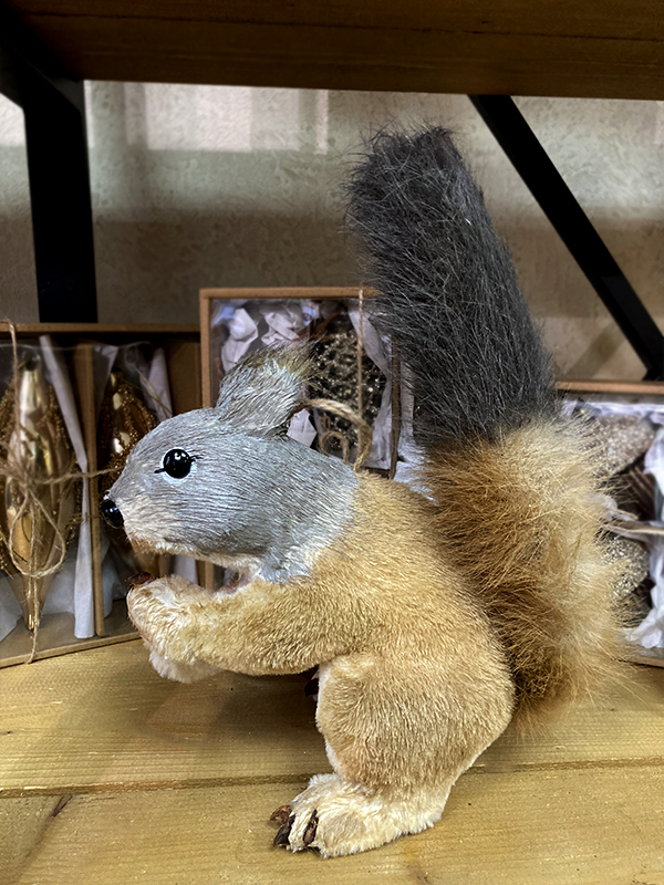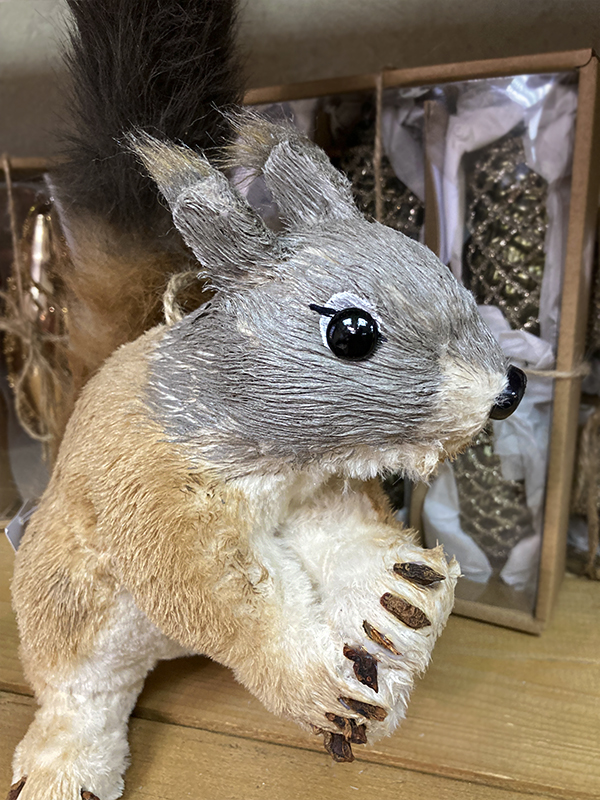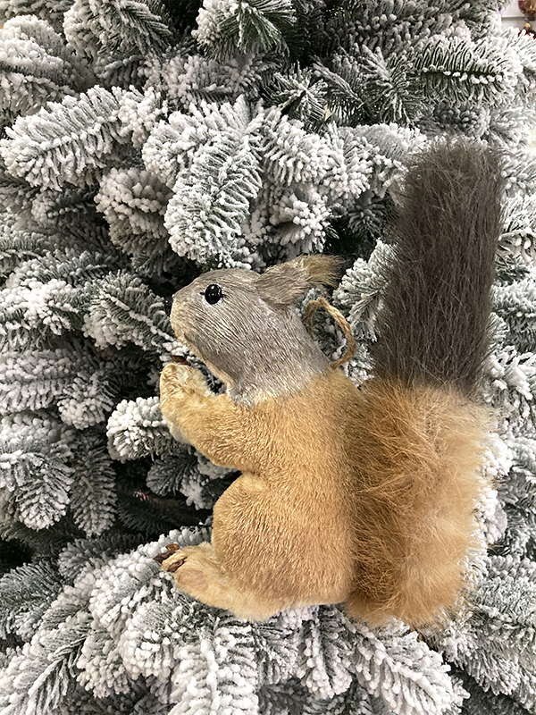 Елочное украшение "Белка" — это забавная, мягкая фигурка милой белочки которая хочет взять орех. У белки большой пушистый хвостик, коричневого цвета. На неё нельзя посмотреть и не улыбнуться. Она принесёт позитив и хорошее новогоднее настроение в чудесные зимние праздники. Белочка вешается на ель с помощью подвеса.