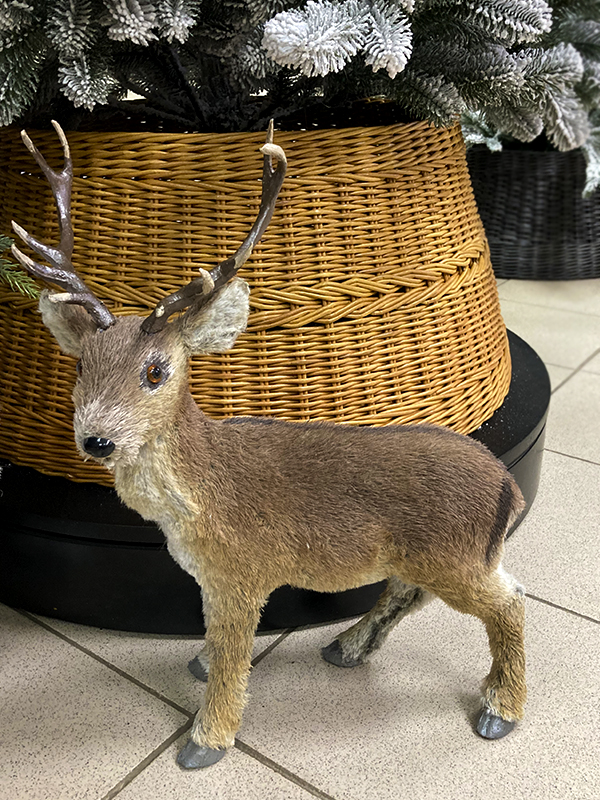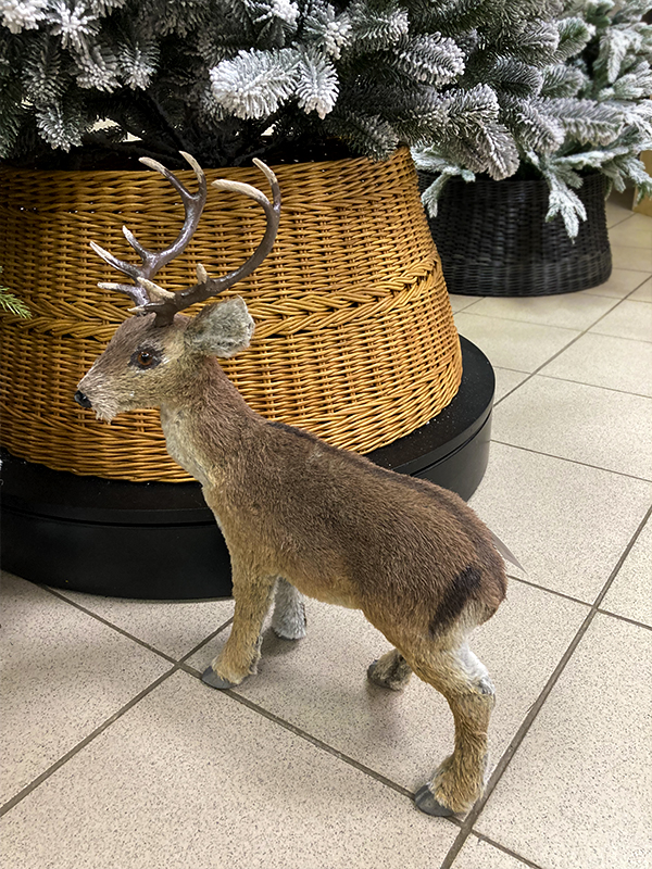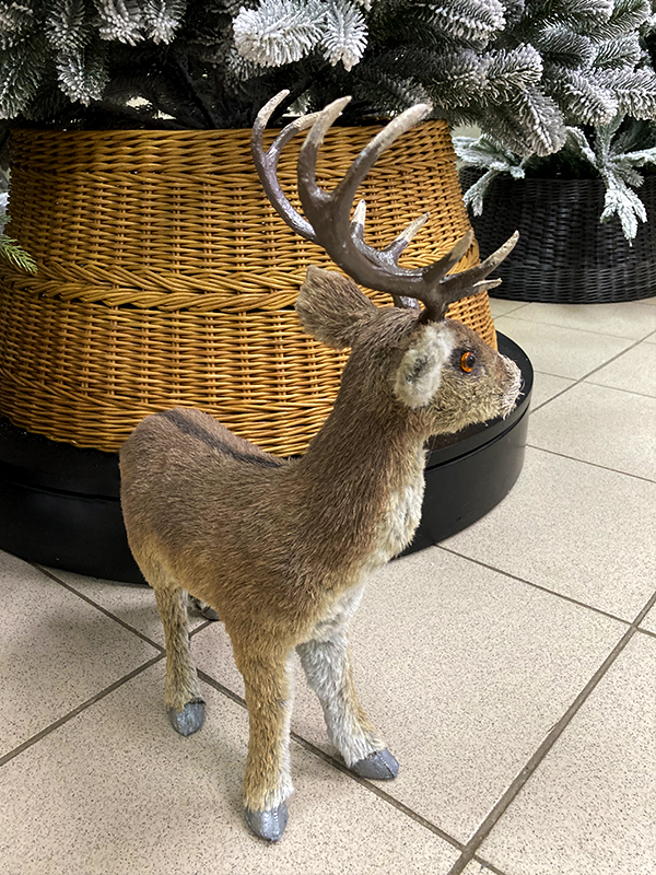 Украшение елочное "Олень" — это забавная фигурка лесного оленя среднего размера. Олень мягкий и приятный на ощупь, хорошо держит форму, рога выполнены из пластика. На него нельзя посмотреть и не улыбнуться. Он принесёт позитив и хорошее новогоднее настроение в чудесные зимние праздники.