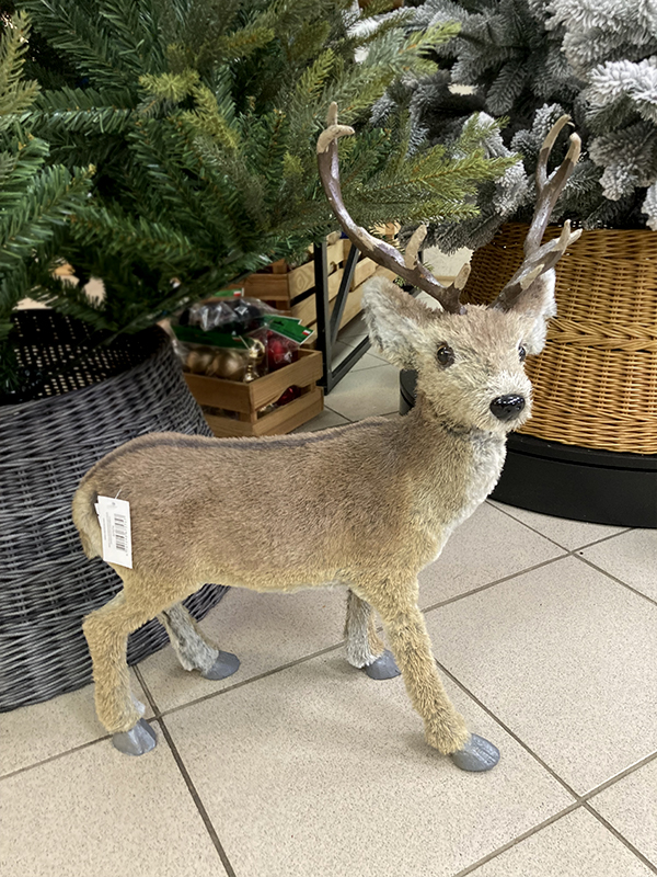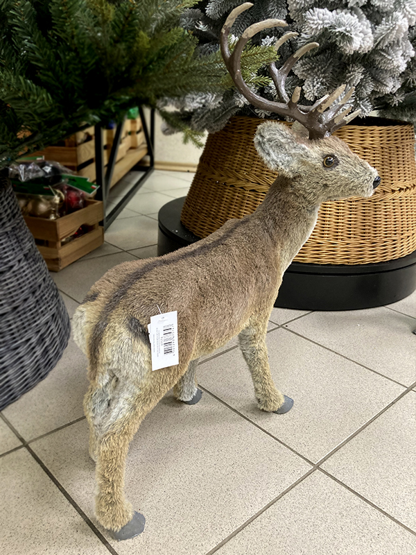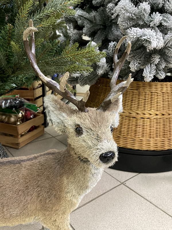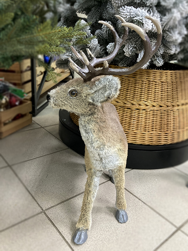 Украшение елочное "Олень" — это забавная фигурка лесного оленя среднего размера. Олень мягкий и приятный на ощупь, хорошо держит форму, рога выполнены из пластика. На него нельзя посмотреть и не улыбнуться. Он принесёт позитив и хорошее новогоднее настроение в чудесные зимние праздники.