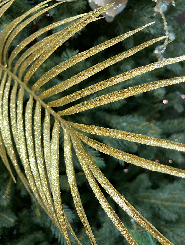 Ветка новогодняя "Пальмовый лист" - это современное решение для новогоднего декора. Веточка изумительного листика дополнит великолепный новогодний букет своей воздушной утончённостью! С его помощью вы можете создать неповторимый декор елочки но и использовать в дизайне помещения.
