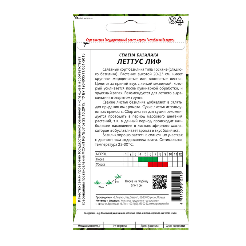 Посев: с апреля по июль