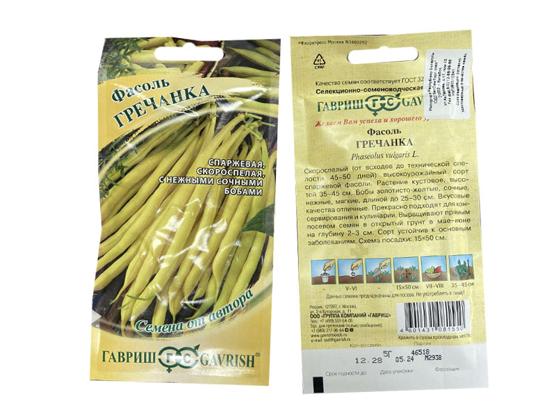 Семена фасоли Гречанка кустовая желтая 5гр, из серии Семена от автора. Скороспелый (от всходов до технической спелости 45-50 дней) высокоурожайный сорт спаржевой фасоли. Растение кустовое, высотой 40 см. Бобы золотисто-желтые, сочные, мягкие, длиной до 30 см, очень нежные. Идеально подходят для консервирования и кулинарии. Выращивают прямым посевом семян в открытый грунт на глубину 2-3 см. Сорт устойчив к основным заболеваниям. Урожайность 1,2-1,7 кг/м2.