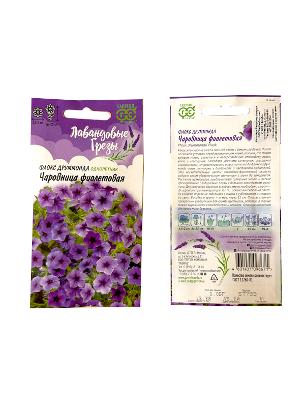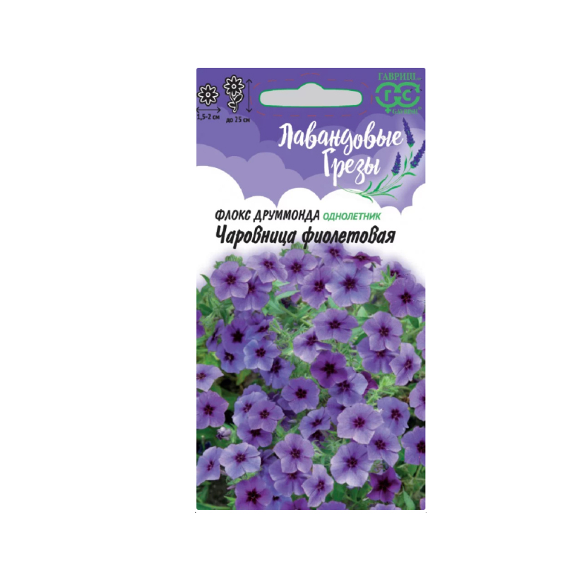 Семена флокса друммонда Чаровница фиолетовая 0.05гр, серия Лавандовые грёзы. Какое это счастье иметь свой сад рядом с домом или дачей. Никто не сможет устоять перед великолепием клумб, газонов, где тихим вечером можно окунуться в непередаваемую атмосферу покоя, уюта и созерцания. Благодаря удачному сочетанию роскошной изысканности, неприхотливости и простоте ухода флоксы Друммонда очень популярны среди дизайнеров и цветоводов-любителей. Эти восхитительные цветы лавандово-фиолетовой окраски радуют своим удивительным цветением с июня до заморозков. Растение низкорослое, предпочитает солнечные места и легкие дренированные плодородные почвы с большим количеством органики. Для получения дружных всходов семена необходимо стратифицировать при температуре +10°С. Семена высевают на рассаду в марте-апреле, не заделывая, в ящики с субстратом и ставят на свет. Высадка в грунт — в мае, через 15 см. Флоксы станут прекрасным украшением для клумб, цветников, рабаток, а также можно выращивать в контейнерах и горшках. Отлично подходит для ярких мини-букетов.