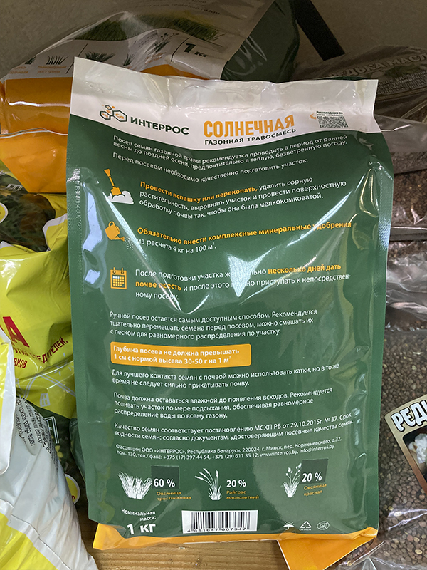Газонная травосмесь "Интеррос Солнечная" 1 кг