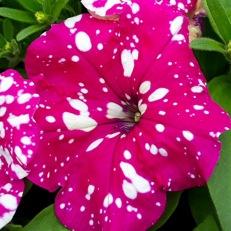 Сочетание яркой окраски и белых крапинок делают цветки необычными и привлекательными. При жаркой и изменчивой погоде меняется форма, частота и интенсивность белых рисунков на лепестках, в результате чего каждый цветок неповторим и оригинален. Растения высотой 30-35 см хорошо ветвятся и обильно цветут. Цветки диаметром 6 -7 см. Гибрид пригоден для цветочных клумб, балконных ящиков и контейнеров. Способны быстро восстанавливать великолепный внешний вид после сильного дождя.