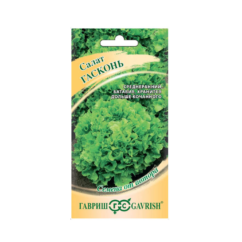 Семена салата Гасконь 0.5гр, из серии Семена от автора. Среднеранний (начало хозяйственной годности наступает через 45-48 дней) сорт типа Батавия (новейший тип листового срезочного салата). Рекомендуется для выращивания в открытом грунте и под временными пленочными укрытиями. Розетка крупного размера, компактная, диаметром 30-35 см. Лист зеленовато-желтой окраски, волнистый, сильноизрезанный. Масса одного растения 450-550 г. По вкусу салаты типа батавия напоминают кочанные, но гораздо дольше сохраняют свою свежесть. Сорт устойчив к цветушности и основным заболеваниям салата. Посев семян непосредственно в грунт — в апреле — мае. На рассаду высевают — в марте — апреле, высадка рассады – в мае. Схема посадки: 25x30 см. Для формирования мощной розетки требуются регулярные и умеренные поливы, не допускающие как застоя воды, так и пересушивания почвы.