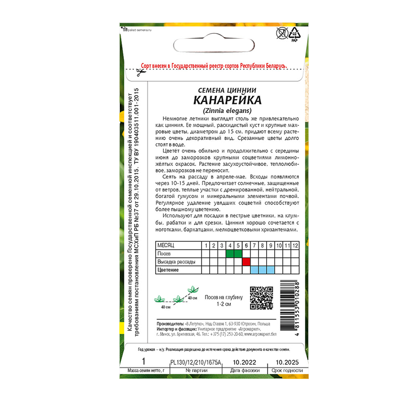 Семена циннии Канарейка