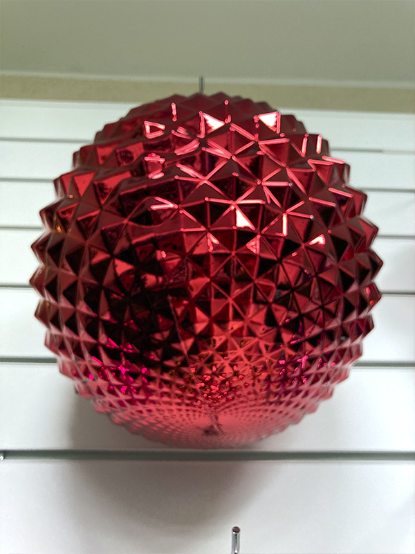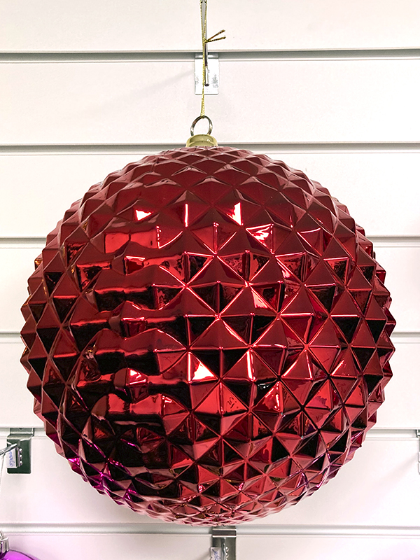 Новогоднее украшение в виде шара. Шар выполнен в глянцевом красном цвете и имеет рельефную поверхность. Изготовлен из прочного пластика, благодаря чему не бьются при падении. Отлично смотреться на любых елочках. Прекрасно сочетается с другими украшениями и легко вписывается в любой стиль оформления.