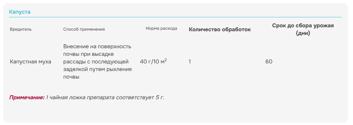 Поможет защититься от луковой и капустной мух, а заодно и от почвенных мушек. Его гранулы вносят в грядки при посадке с последующим рыхлением. Под цветочные растения гранулы Мухоеда вносятся поверхностно с последующей заделкой в почву. Мухоед характеризуется длительным периодом защитного действия и отвечает самым современным требованиям: не токсичен для растений; не накапливается в почве; не оказывает вредного влияния на почвенные микроорганизмы и дождевых червей. Вредители погибают в течение 2-3 суток после попадания препарата внутрь насекомого, и далее защитное действие сохраняется на весь сезон.