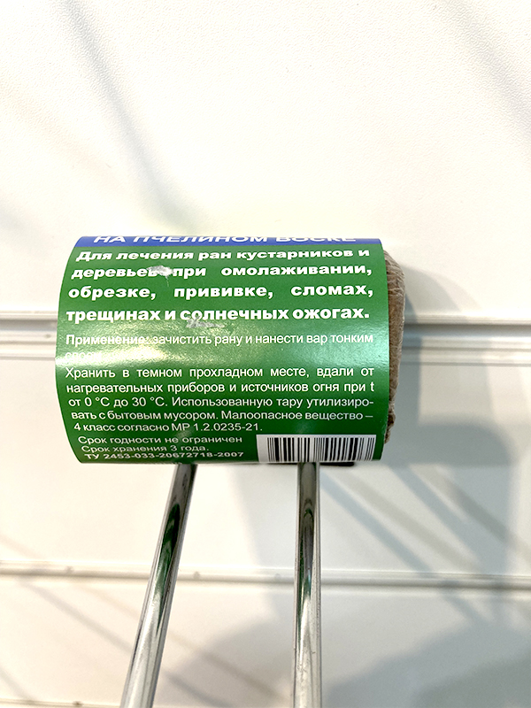 Применение: Лечебный садовый вар наносим удобным для Вас способом на спилы и срезы веток, в трещины и ранки.