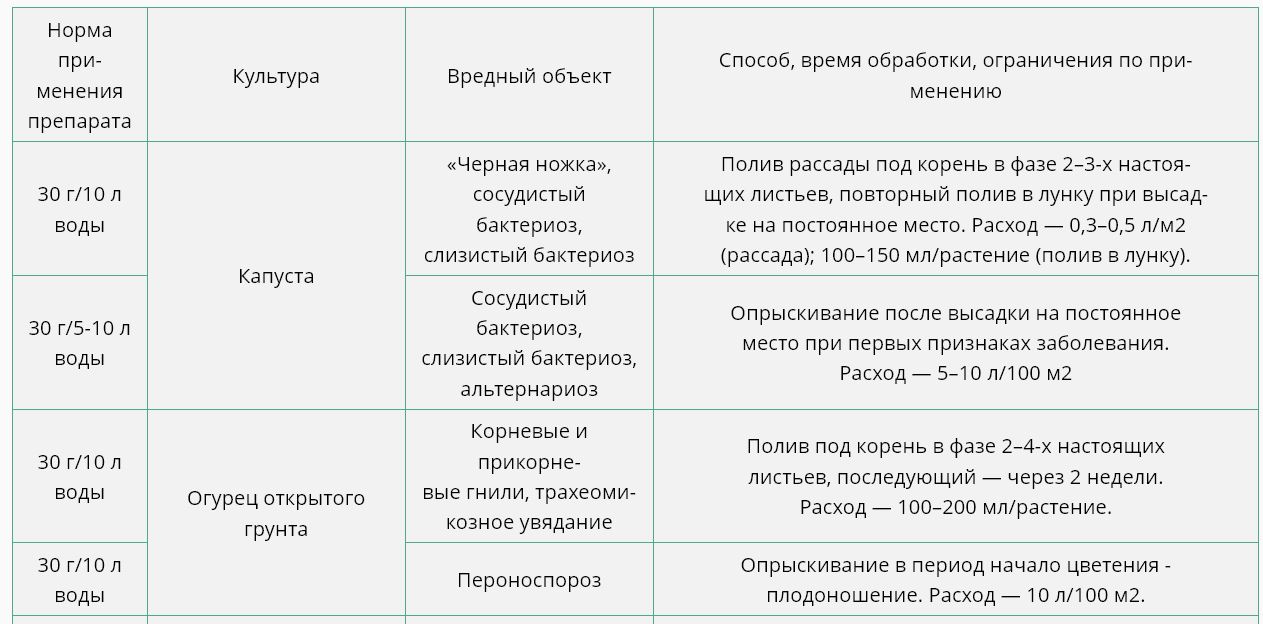 Скорость воздействия: Подавляет фитопатогенные грибы в начальный период их развития, не нарушая роста растений. Не фитотоксичен. Препарат не патогенен и не токсичен для полезной энтомофауны. Класс опасности для пчел — 3 (малоопасный). Период защитного действия: 20-30 дней. Селективность: действует на определенные виды грибов и бактерий. Фунгицид для протравливания семян и профилактической обработки растений от болезней, биологической дезинфекции почвы в защищённом грунте, стимулятор всхожести.Период защитного действия: От предпосевной обработки семян и до окончания вегетационного периода развития растений.