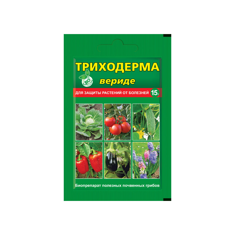 Эффективный биопрепарат для защиты растений от болезней. В его основе — дружественные культурным растениям микроскопические грибы, подавляющие более 60 видов(!) болезнетворных микробов. Защищает от корневых и плодовых гнилей, черной ножки, белой и серой гнили, макроспориоза, фузариоза, фитофтороза, антракноза, вилта и др Попадая во влажную почву, споры «Триходермы» прорастают, выделяя природные «антибиотики» и обеззараживая почву вокруг. При этом препарат обладает длительным действием: уничтожает покоящиеся и зимующие стадии патогенов. Попадая на поврежденный участок больного растения, споры прорастают, питаясь больной тканью, и одновременно лечат растение.