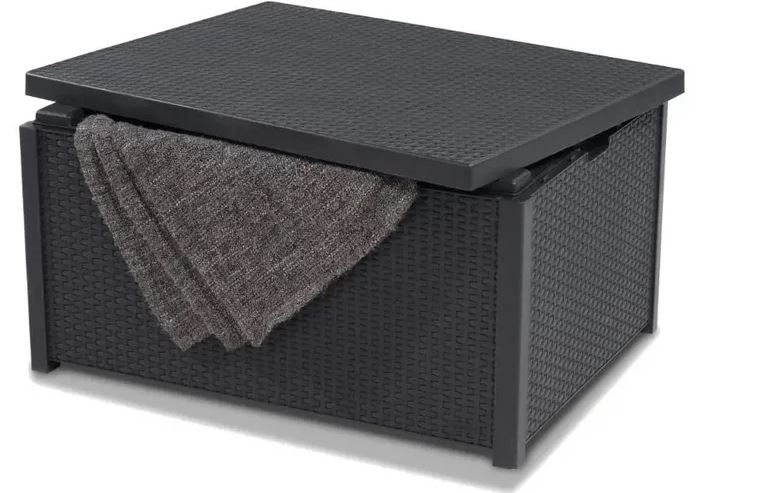 Стол-сундук из искусственного ротанга ARICA RATTAN - это практичный и элегантный стол с отделкой, напоминающей природное ротанговое переплетение. Он прекрасно заполнит небольшие придомовые пространства, такие как балкон или небольшой садик, а также великолепно дополнит дизайн интерьера. Изготовлен из стойкой к воздействию УФ-излучения и погодных условий пластмассы. Но главным его преимуществом является, то что он может служить ещё и как сундук.