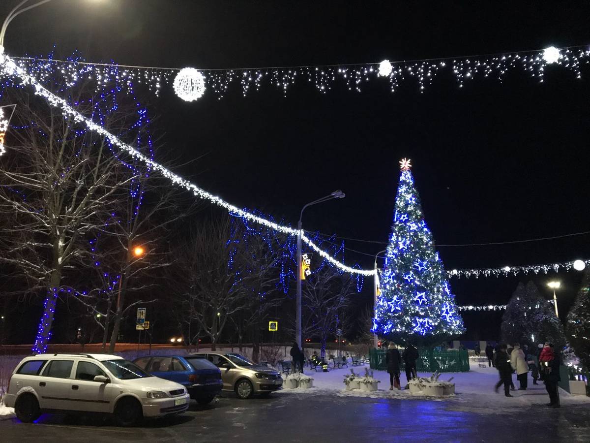 Украшается уличная елка специальными украшениями для больших елок, которые всегда есть у нас в наличии.