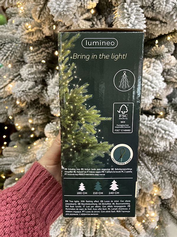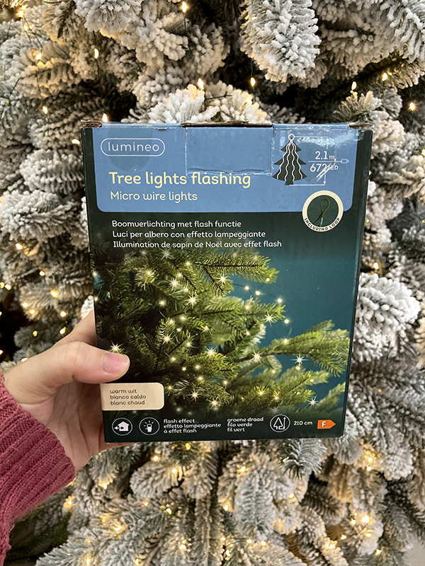 - Количество ламп: 672 теплых белых микро LED с мерцанием.