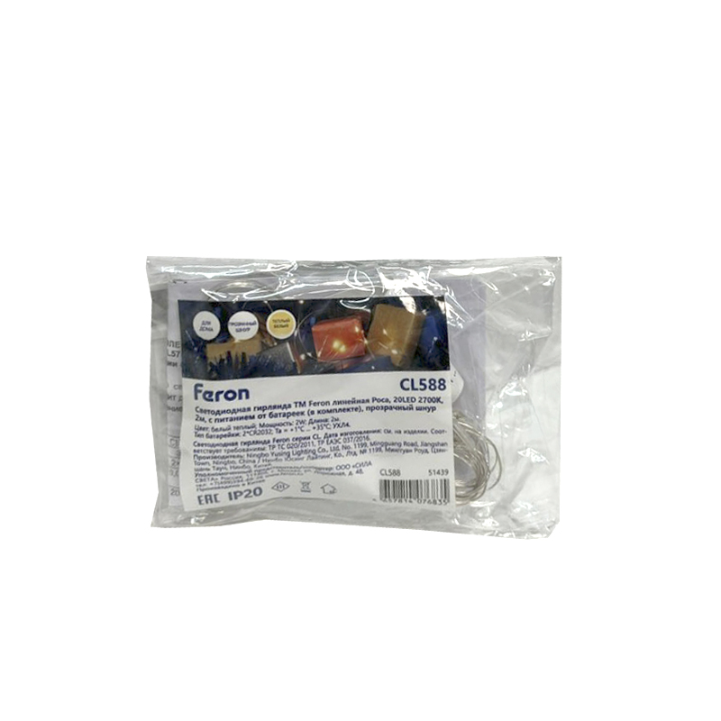 - Длина гирлянды: 2 м + 0.5 м подводка.