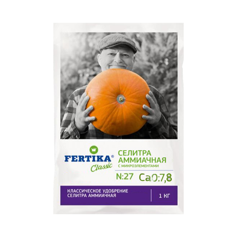 - Массовая доля элементов питания: Азот (N) 27%, Карбонат кальция (CaCO3) 7.8%, Оксид магния (MgO ) 2.6%