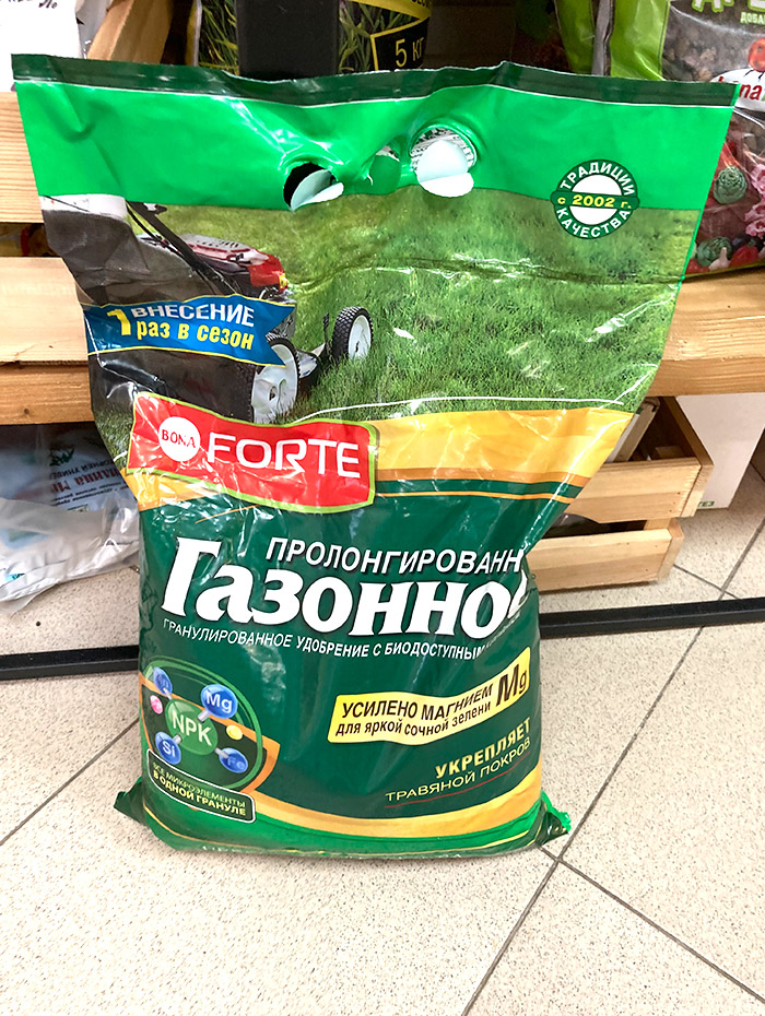 * производится только один раз - в год посадки (!), далее газонные травы ежегодно подкармливаются. -