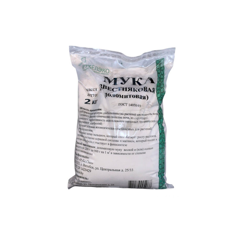 Доломитовая мука ― это размол доломита, является ценным известковым удобрением для многих культур: моркови, свеклы, картофеля, клевера, люцерны, гречихи, лука, льна, и др. Вносится как в открытый грунт, так и в закрытый – парник, теплица, особая эффективность проявляется на бедных магнием песчаных и супесчаных почвах. Муку известняковую не применяют на нейтральных почвах.