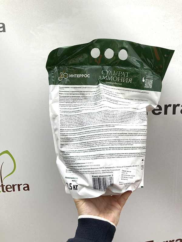 Состав: азот не менее 21%, сера не менее 24%.