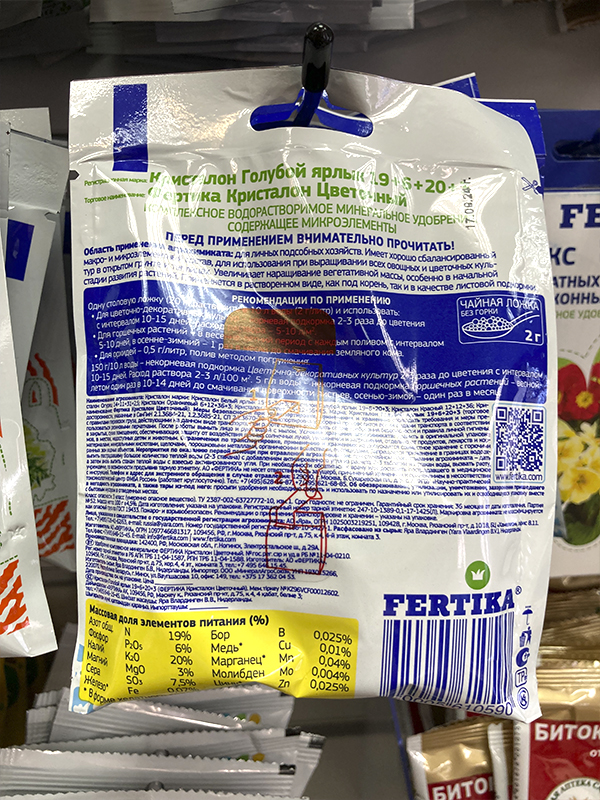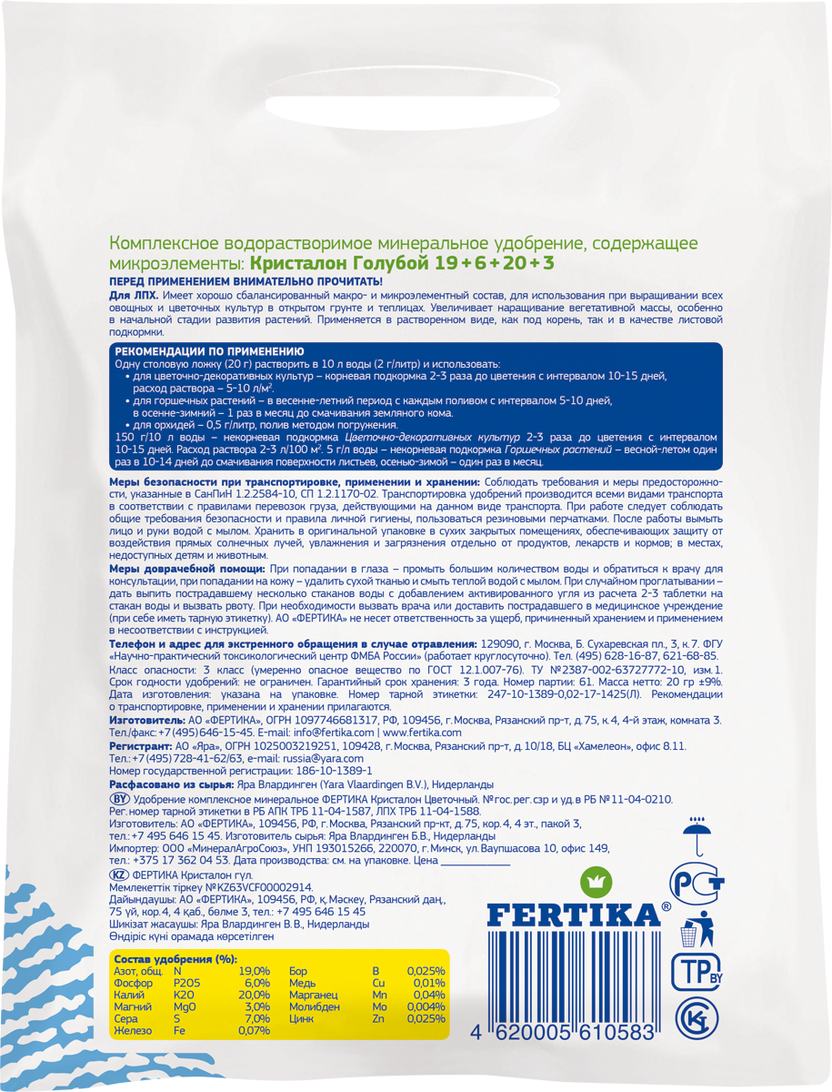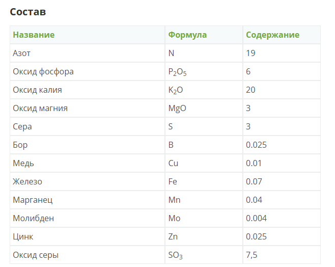Состав: NPK 19:6:20+3 MG+МИКРО