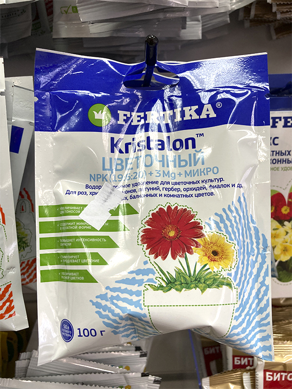 Применение:- При выращивании комнатных растений: Поливать растения следует 0,1-0,2%-ным раствором (10-20 г/10 л. воды) – летом при каждом поливе, зимой – при каждом третьем поливе. Не следует подкармливать свежепересаженные растения и растения находящиеся в состоянии покоя.