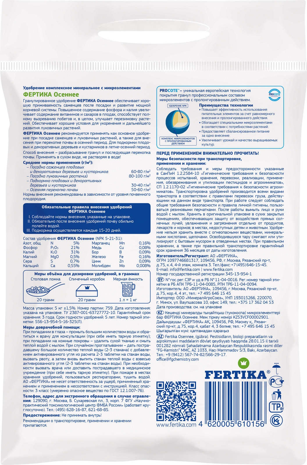 Удобрение Фертика "Осеннее" NPK 4,8:20,8:31,3+МИКРО